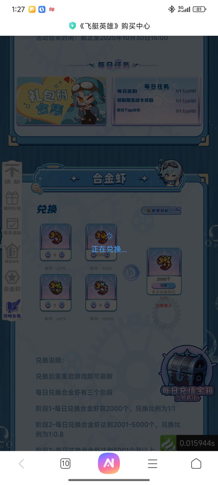 兑换石堂堂卡在正在兑换...界面