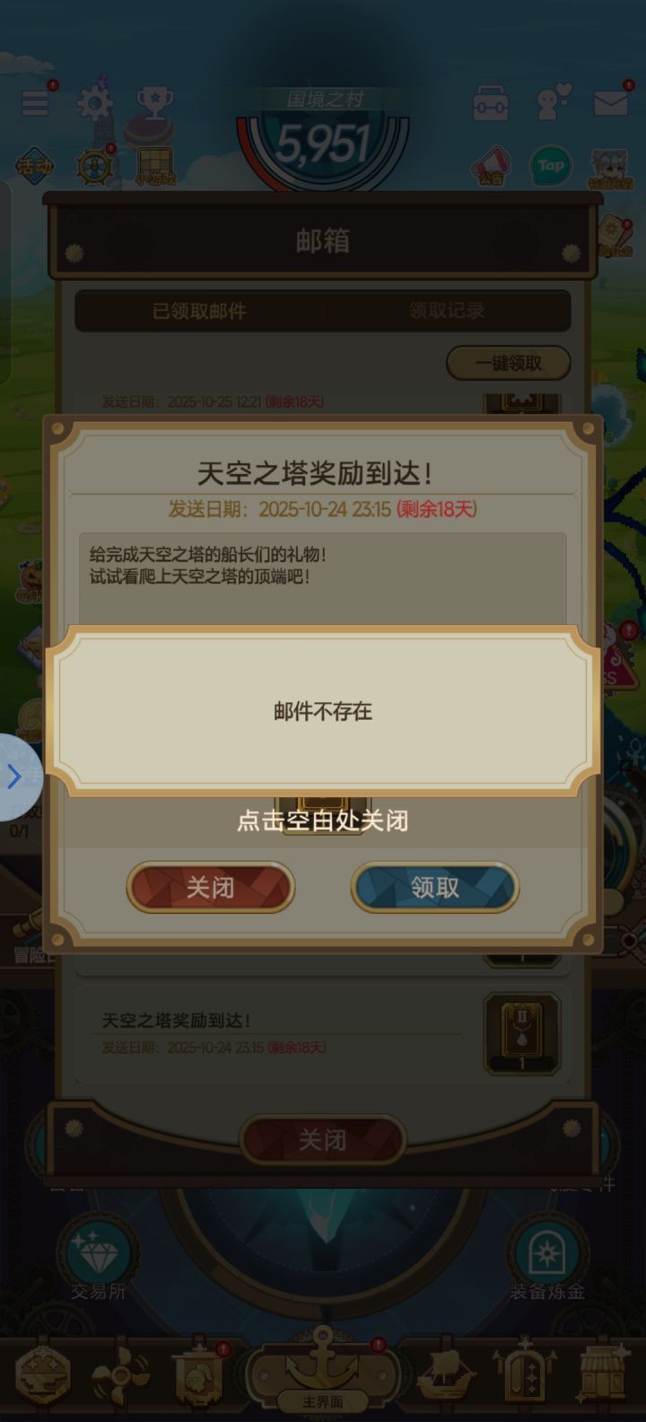 捉个bug 邮件领装备显示邮件不存在但是邮件还剩18天过期,之前也没领过