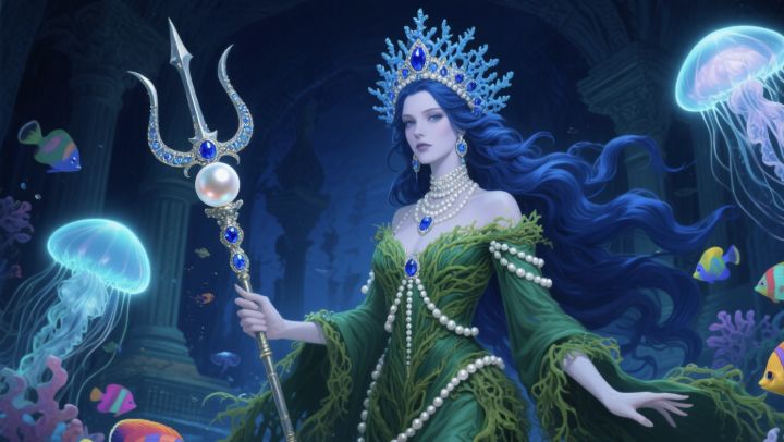 角色名称:海后 安菲特里忒灵感创意来源:作为涅柔斯与多里斯之女,安菲特里忒最初是海仙女(Nereid)的一员,后成为海神波塞冬的配偶,跃升为海洋女王 。自然力量的掌控者:既能平息风暴,也能掀起巨浪,荷马史诗称其为「海洋滋养者」(Halo sydnē),象征海洋的生命力与生态平衡 。- 海洋生物的统治者:神话中她是海豚、海豹等生物的母亲,甚至能驯化海怪,其权能在艺术作品中常表现为与海洋生物