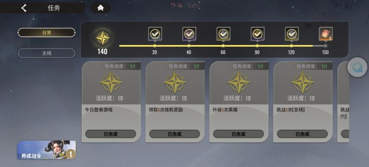 日常任务做完了,但是140活跃,关掉游戏重新登录也不行。