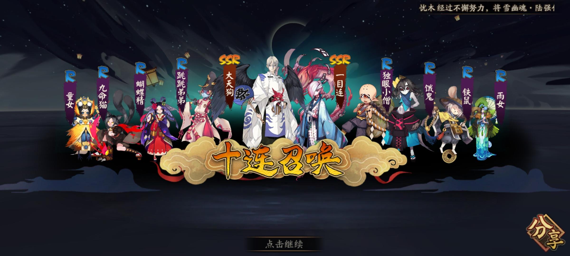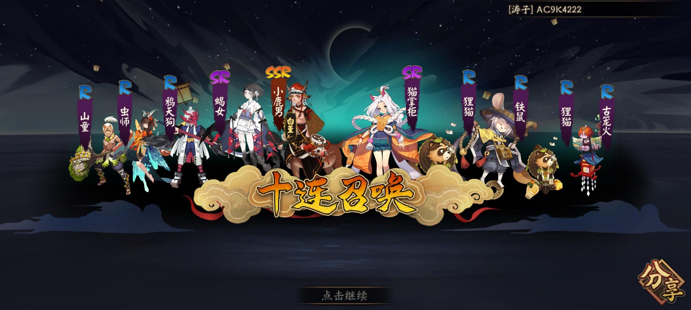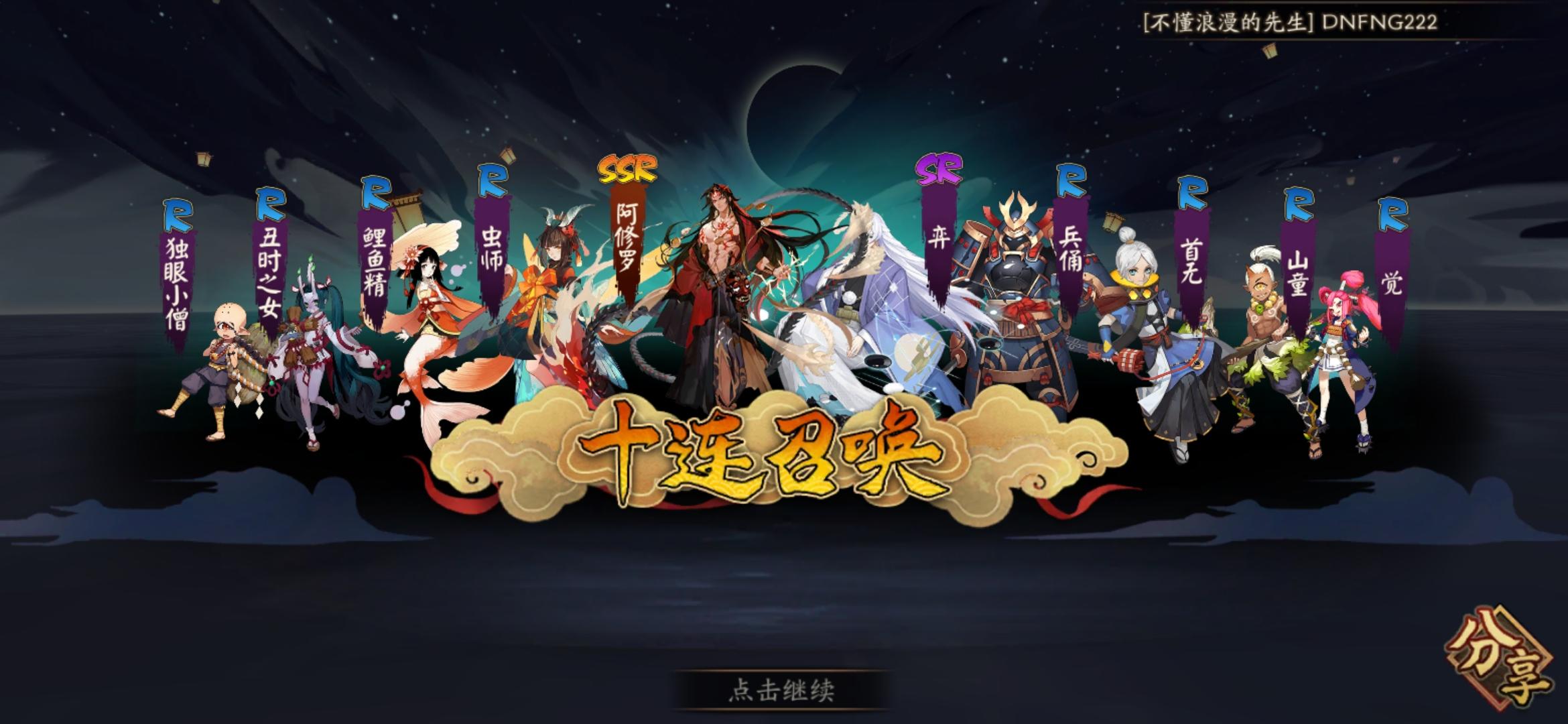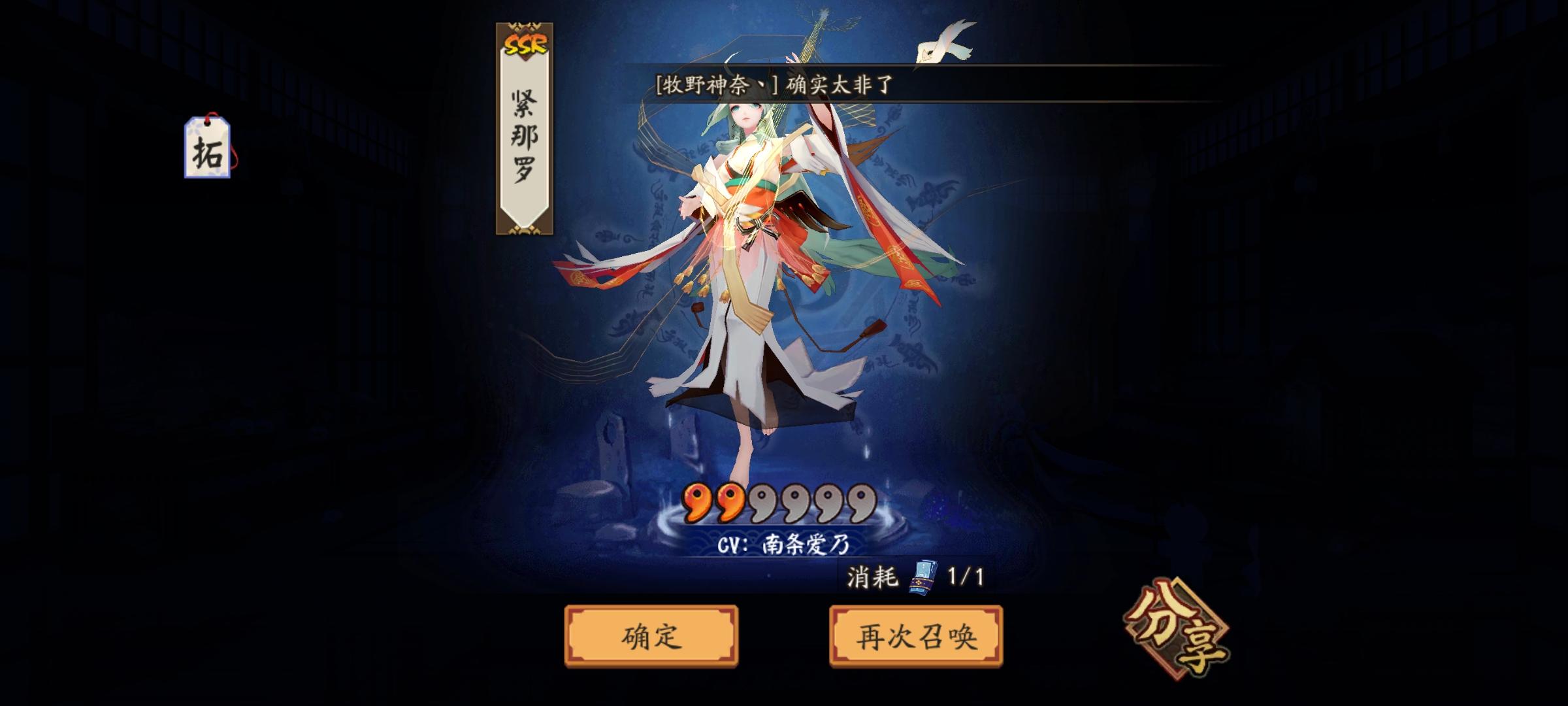 嘻嘻,没想到周年庆太欧了20发,出了食灵,阎魔和饭桶然后40发出了帝释天第50发又出了小白我本来就差阿修罗全图鉴,结果出了两个新ssr后我还是只差阿修罗。不死心就让我朋友帮我抽,结果他第一发十连就外加一个食之符咒然后150抽,7个ssr,外加一个食之符咒,我就莫名其妙的全图鉴了。