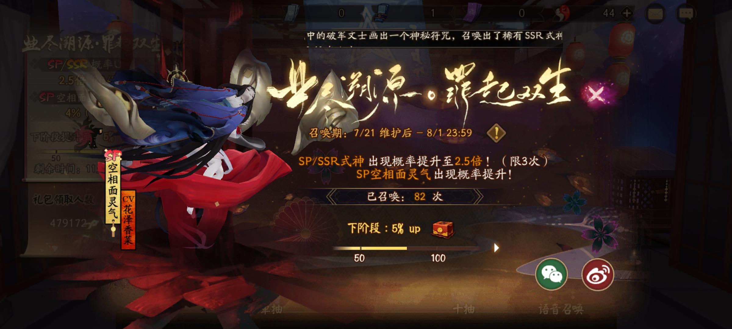 140抽3个已收录式神:鹿丸 花鸟 妖刀🙂