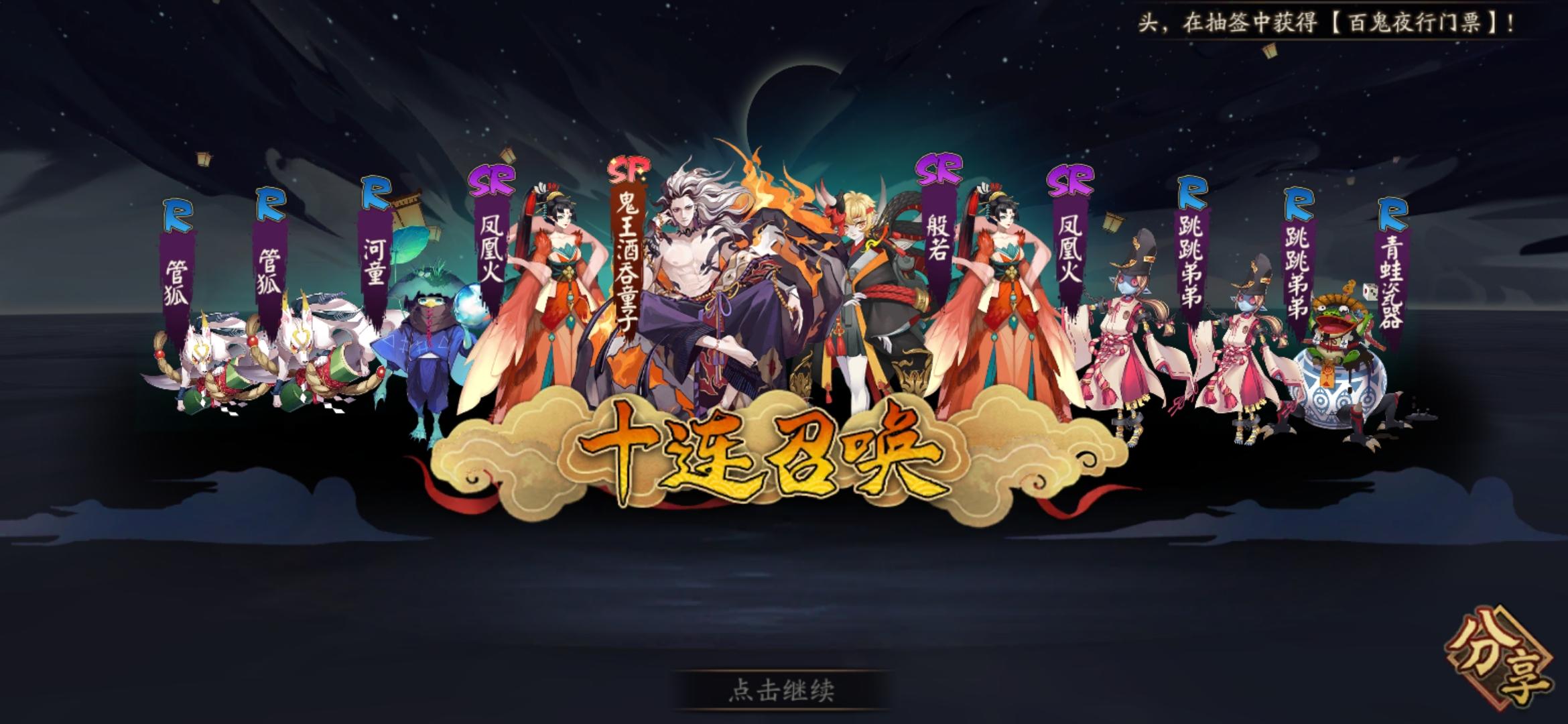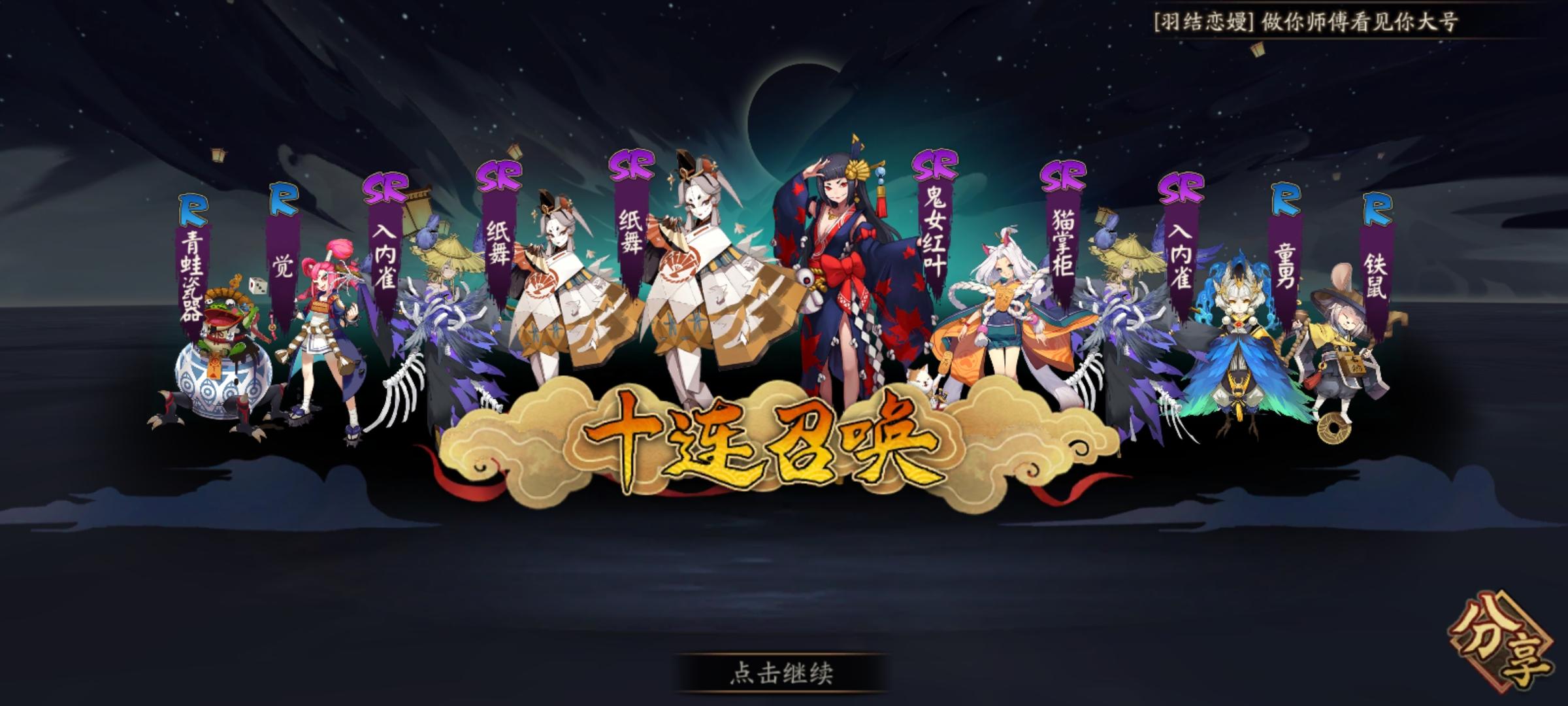 第一个十连我以为我凉了,第二个十连出了个sp天狗,已经喜出望外了,结果突然下载召唤动画。嘿,诶嘿,诶嘿嘿嘿嘿嘿,嘿嘿嘿,玩游戏要啸着玩~