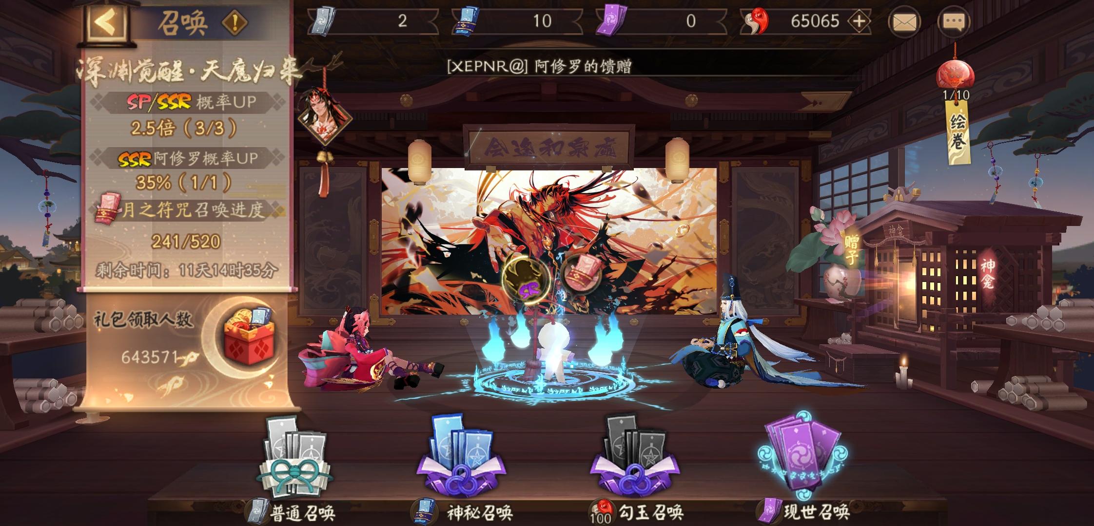 241抽 花勾14956ssr阿修罗(未收录)ssr骑驴少女(已收录)ssr山风(已收录)sp雪女(未收录)sp奶切(已收录)