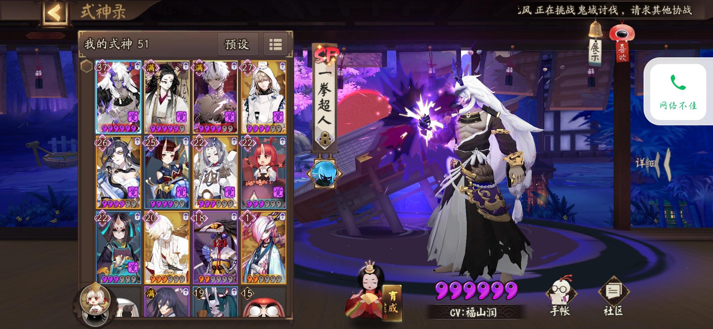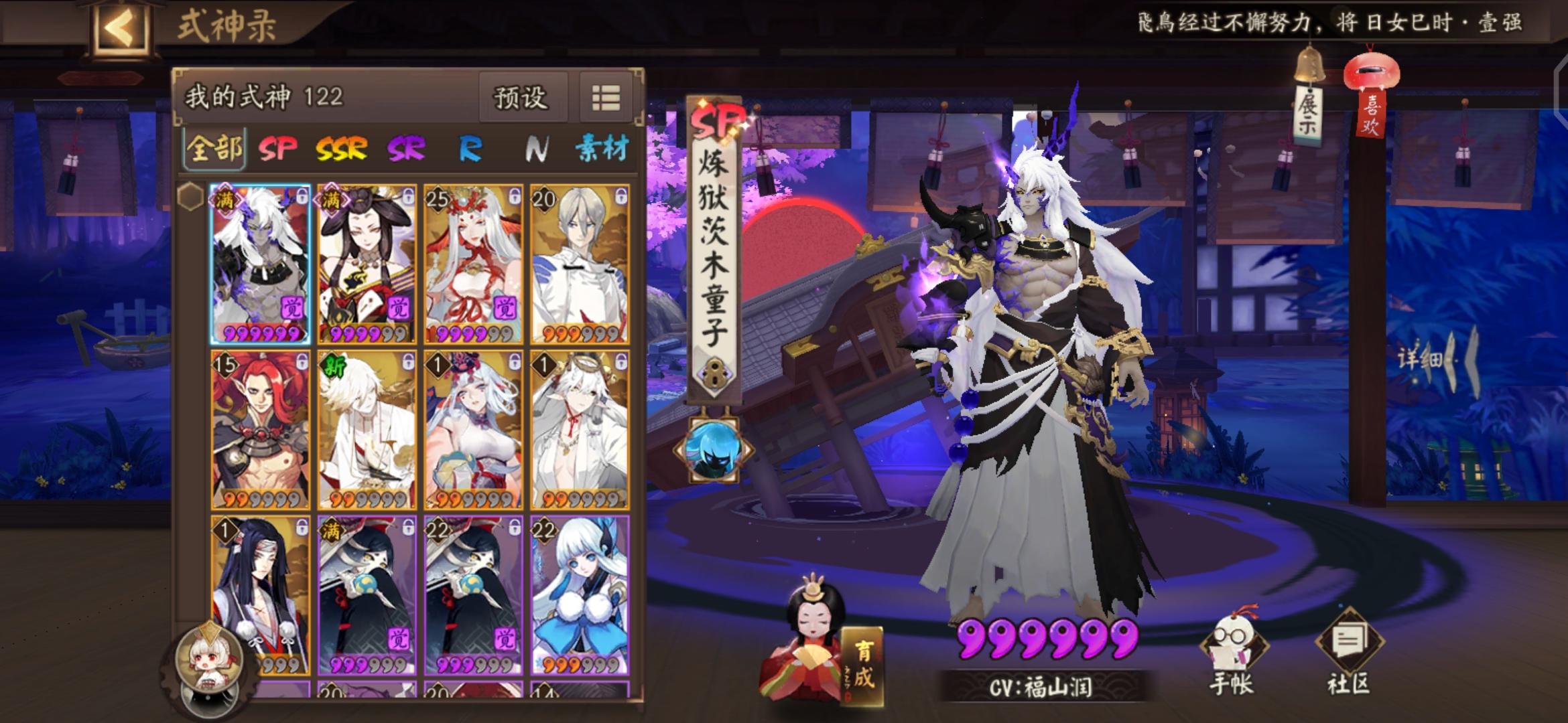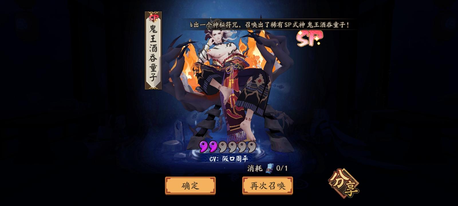 预约:阎魔新区50抽随机SSR:荒活动:酒吞72抽战绩:0SSR,0SP拳头硬了