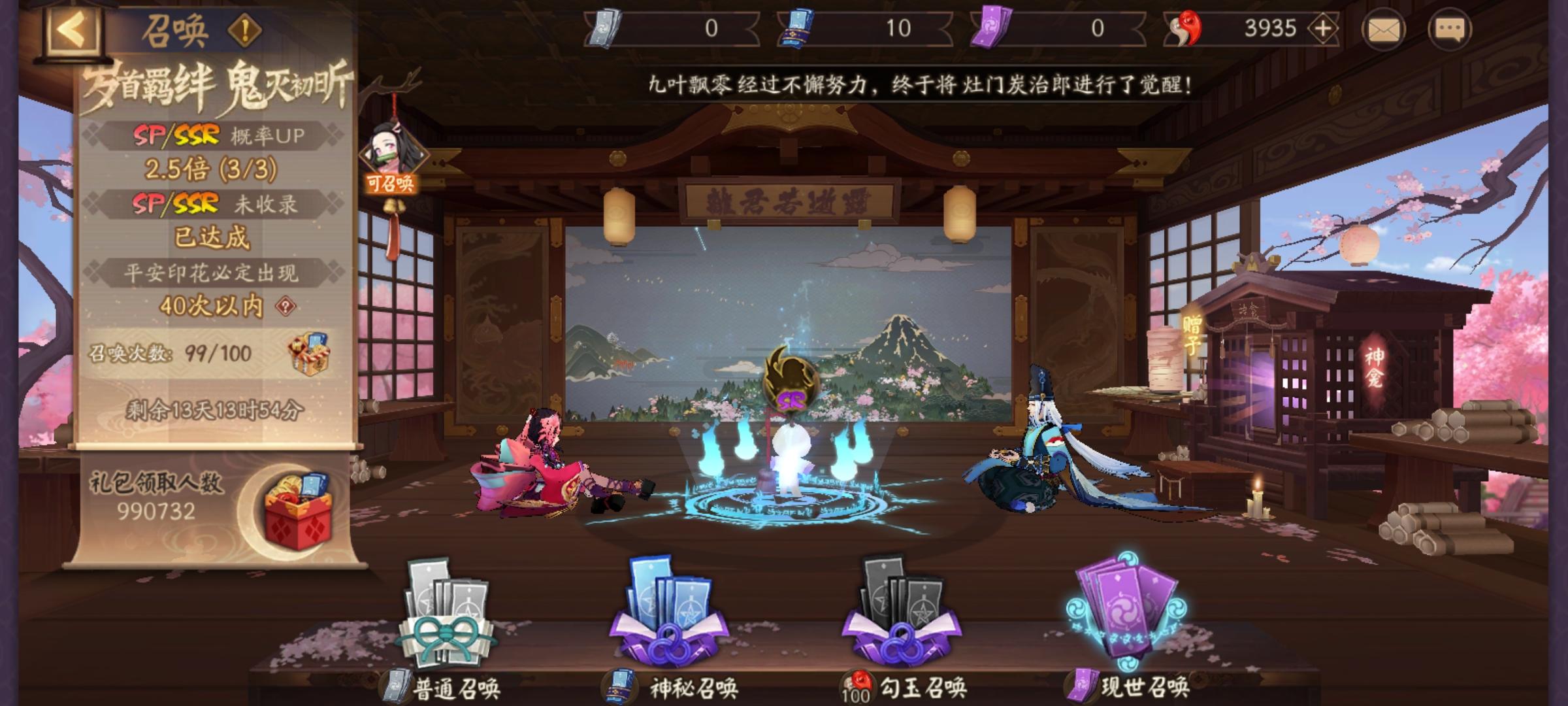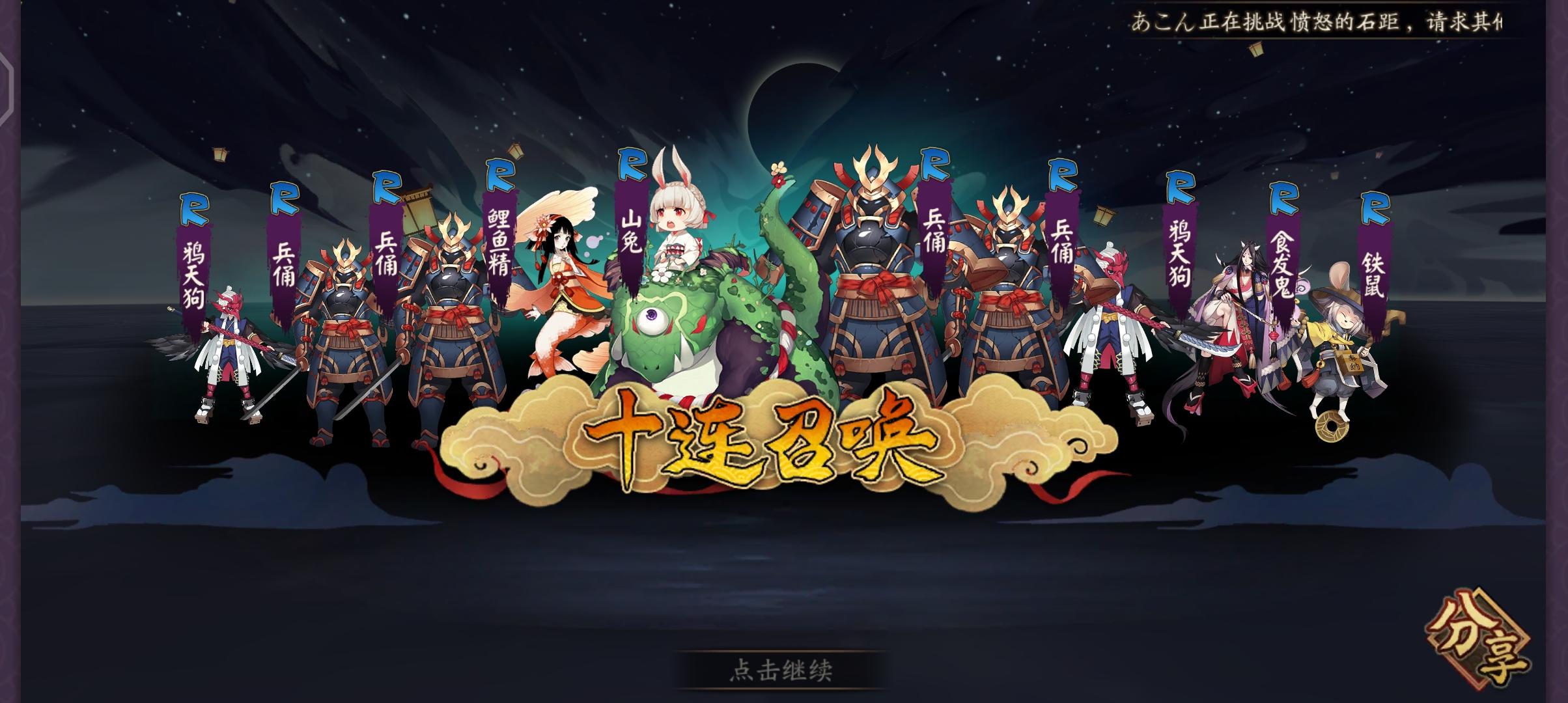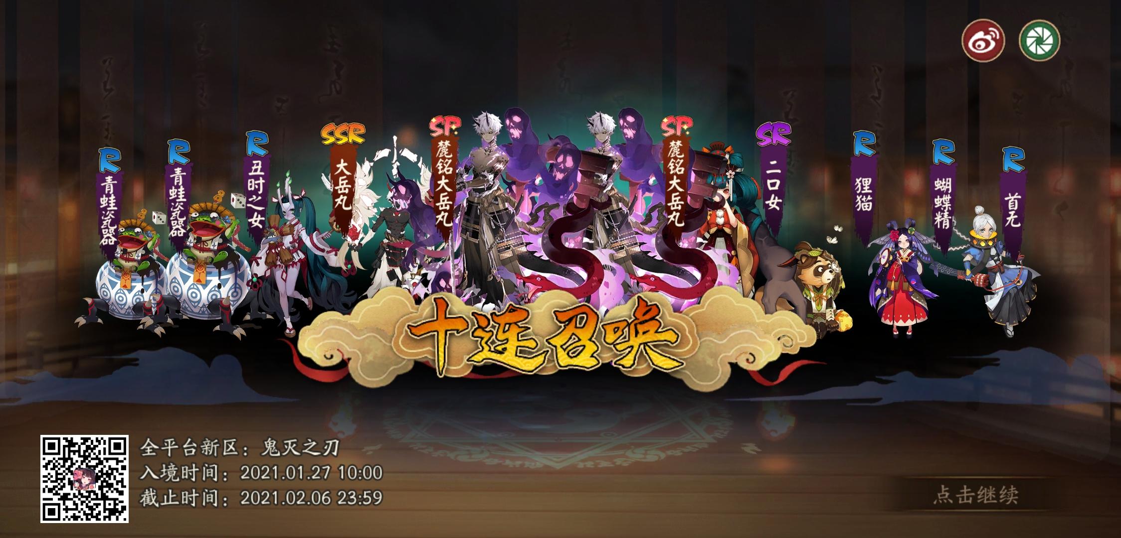 2021年2.7号鬼灭之刃联动记录73抽sp山风(未收录)ssr紧那罗(3)ssr茨木(9)ssr小鹿男(6)妹妹4印花