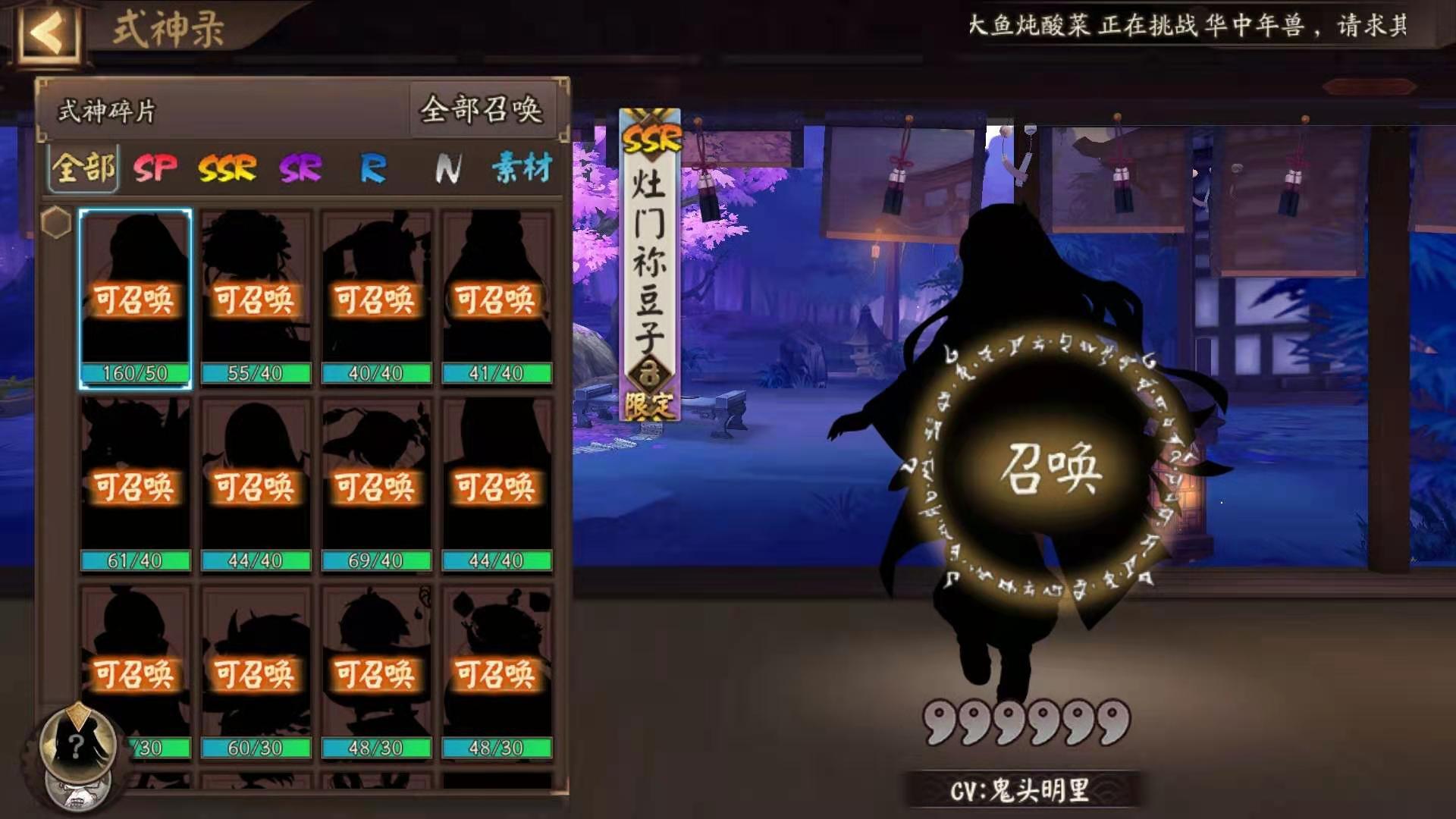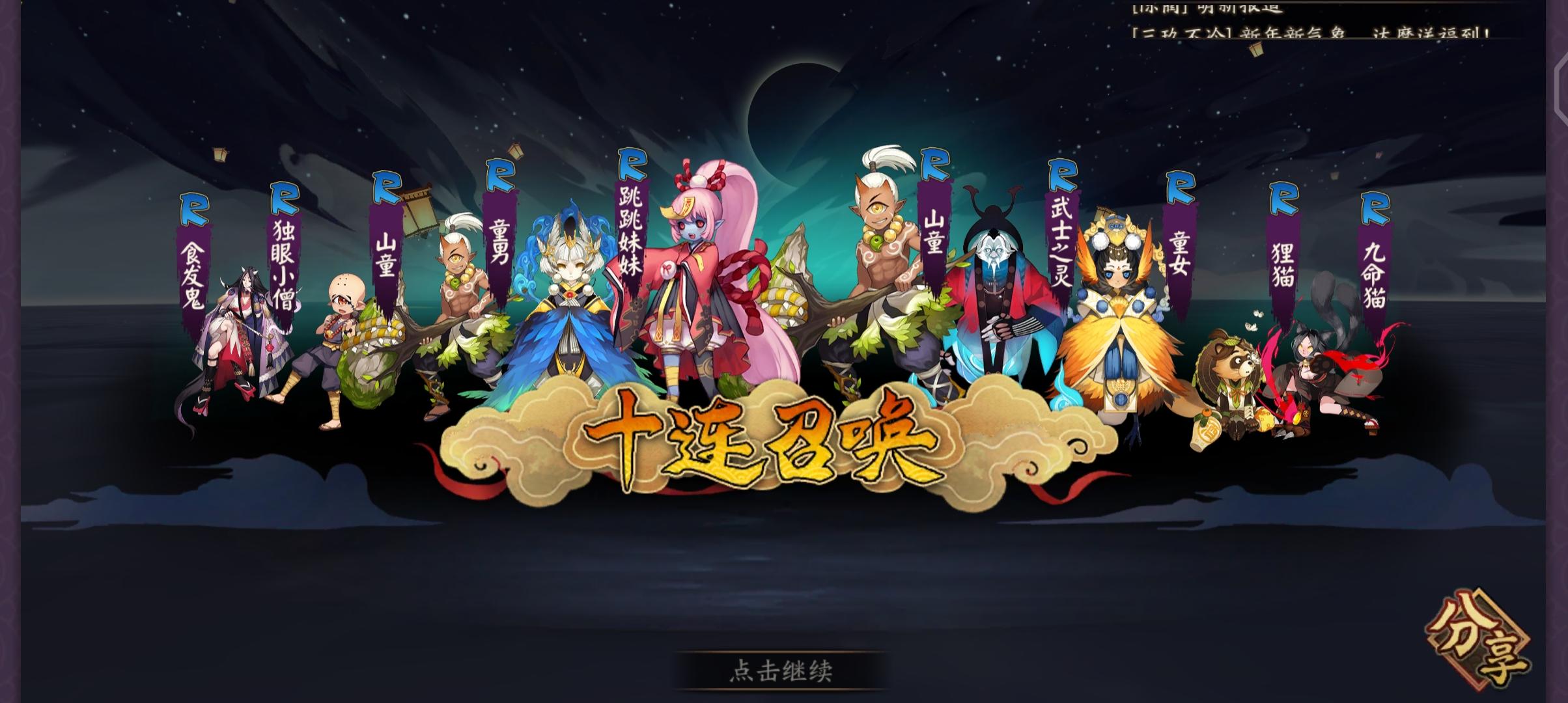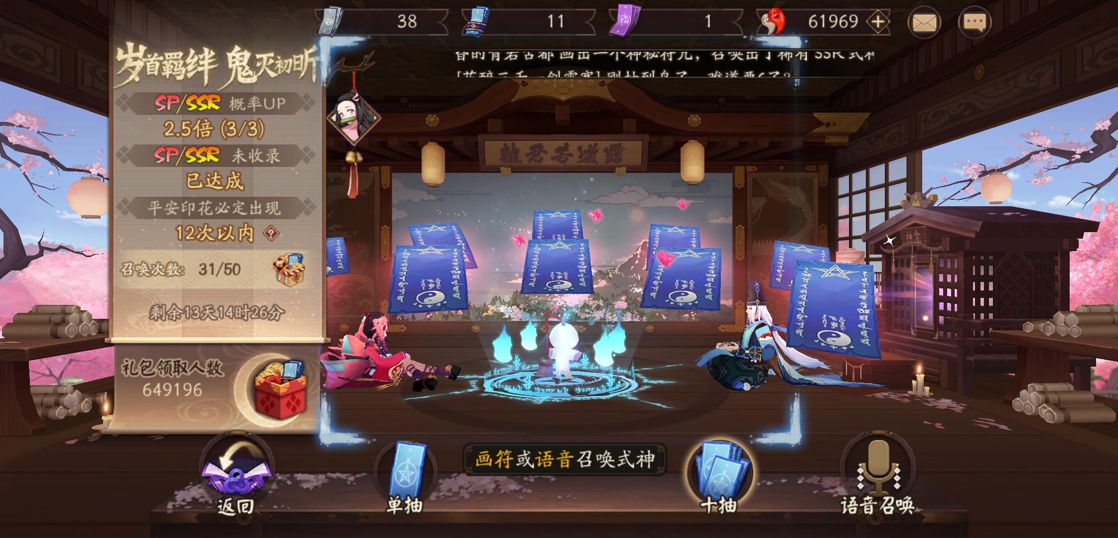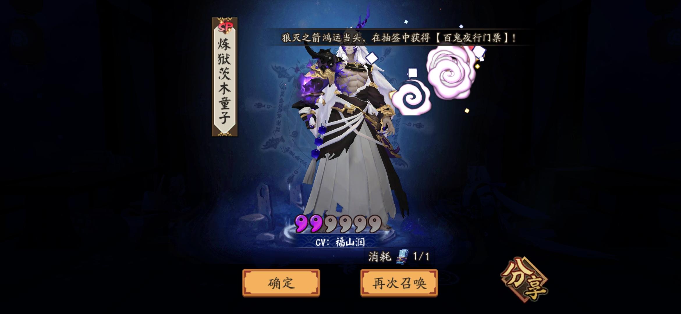 2021年2.7号鬼灭之刃联动记录73抽sp山风(未收录)ssr紧那罗(3)ssr茨木(9)ssr小鹿男(6)妹妹4印花