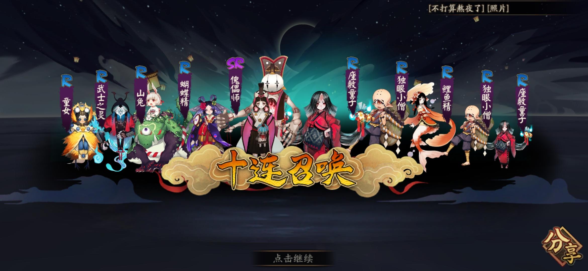 本来抽卡抽的挺难受的,但是卸载了之后感觉还挺开心。刚出不知火的时候玩的,然后中间300天没玩,最近刚回归。听说要有新区,就一直在肝。开始刷狗粮,养了个童熏去做司机。开始新区集结。新区集结这个东西吧。所有登录方式一起上,六个号集结了快十天,每个号每天四抽,到截止一共出的有那么三四个sr?行吧,非就非吧。不说啥。攒了70多张票,因为刚回来的时候有一次骗票活动,一次概率up。用了30张票,无事发生