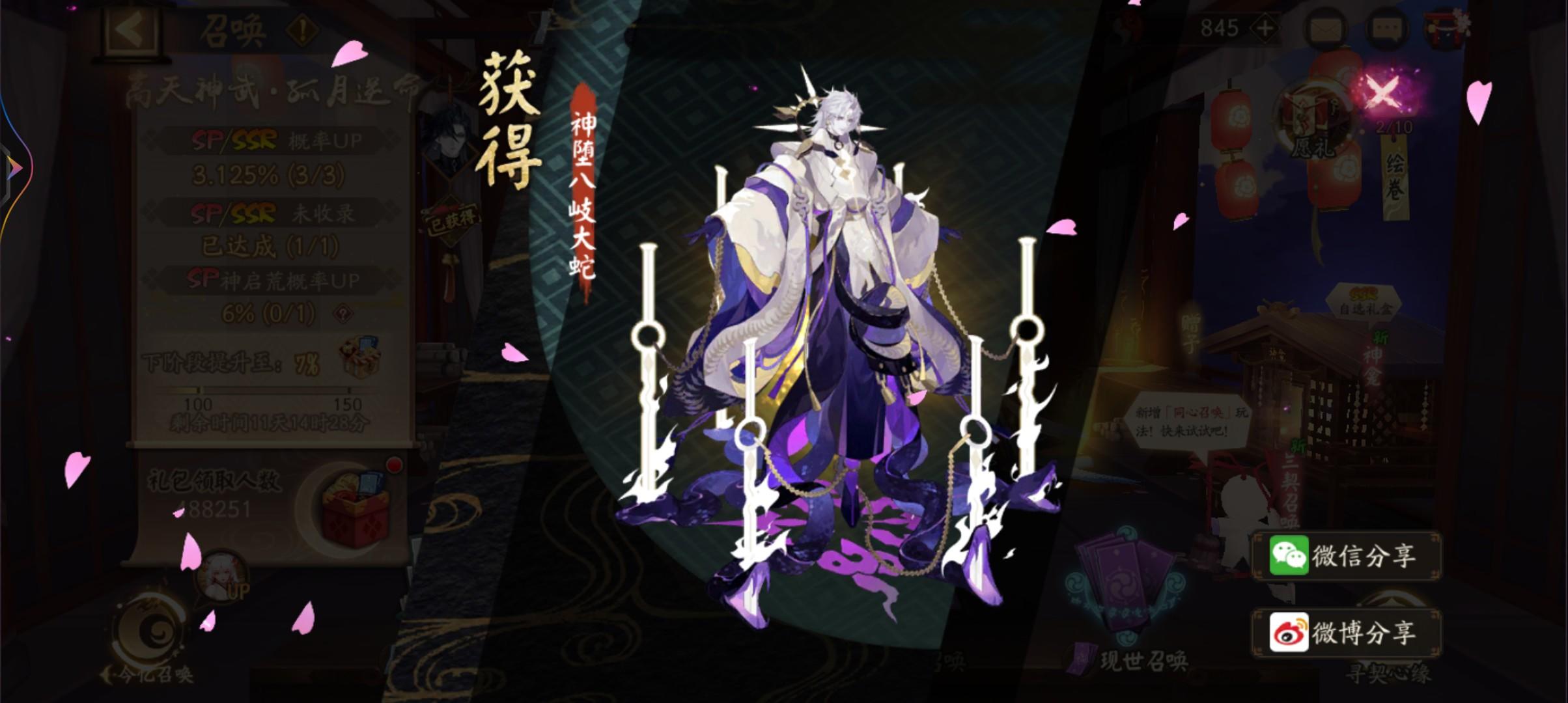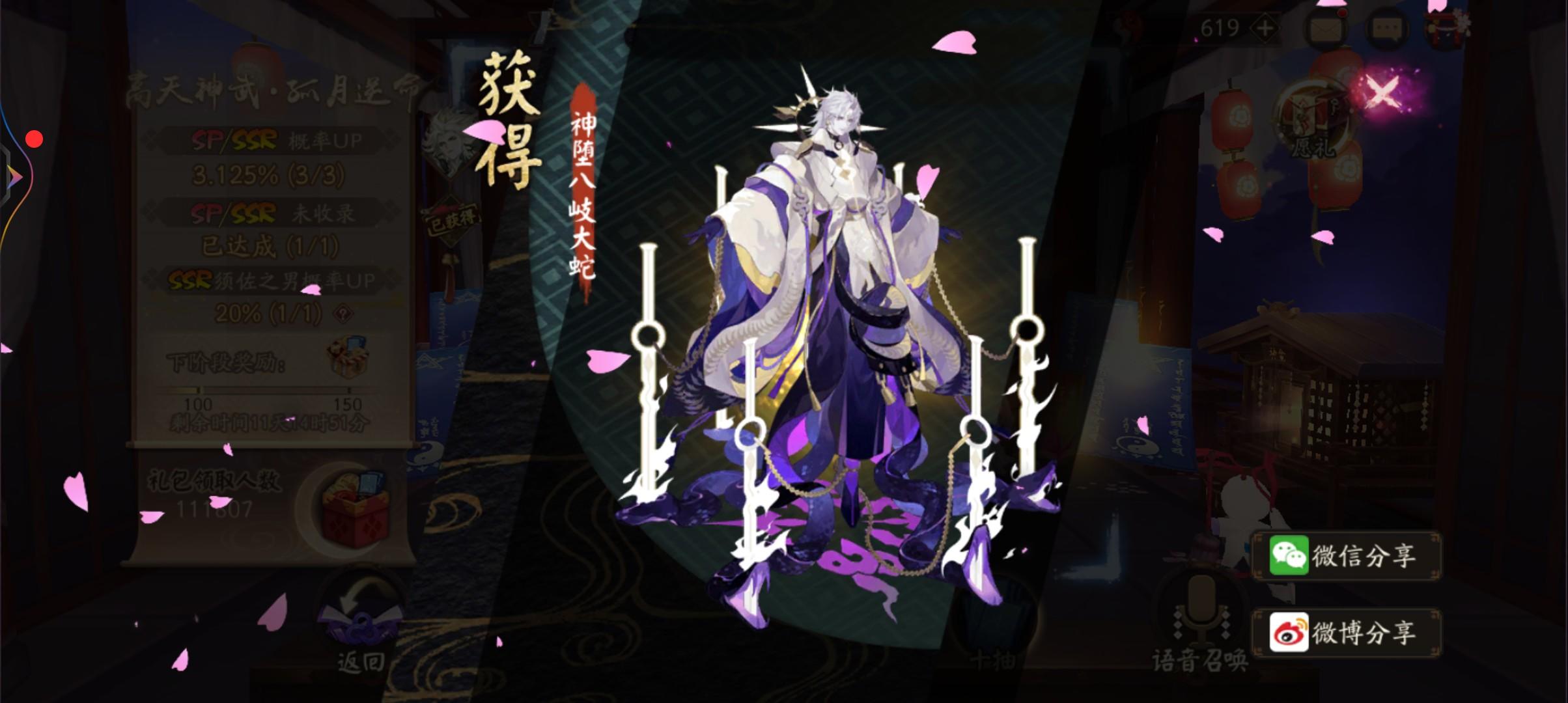 真羡慕你们,我4个号都有须佐之男和SP荒然后100抽送的SP大蛇