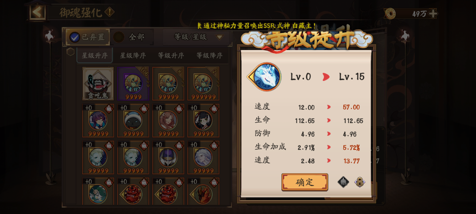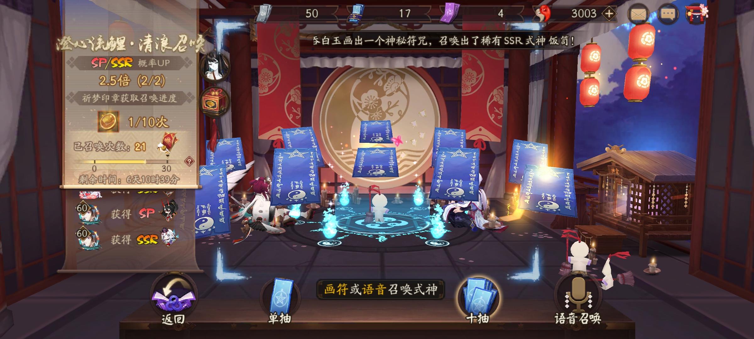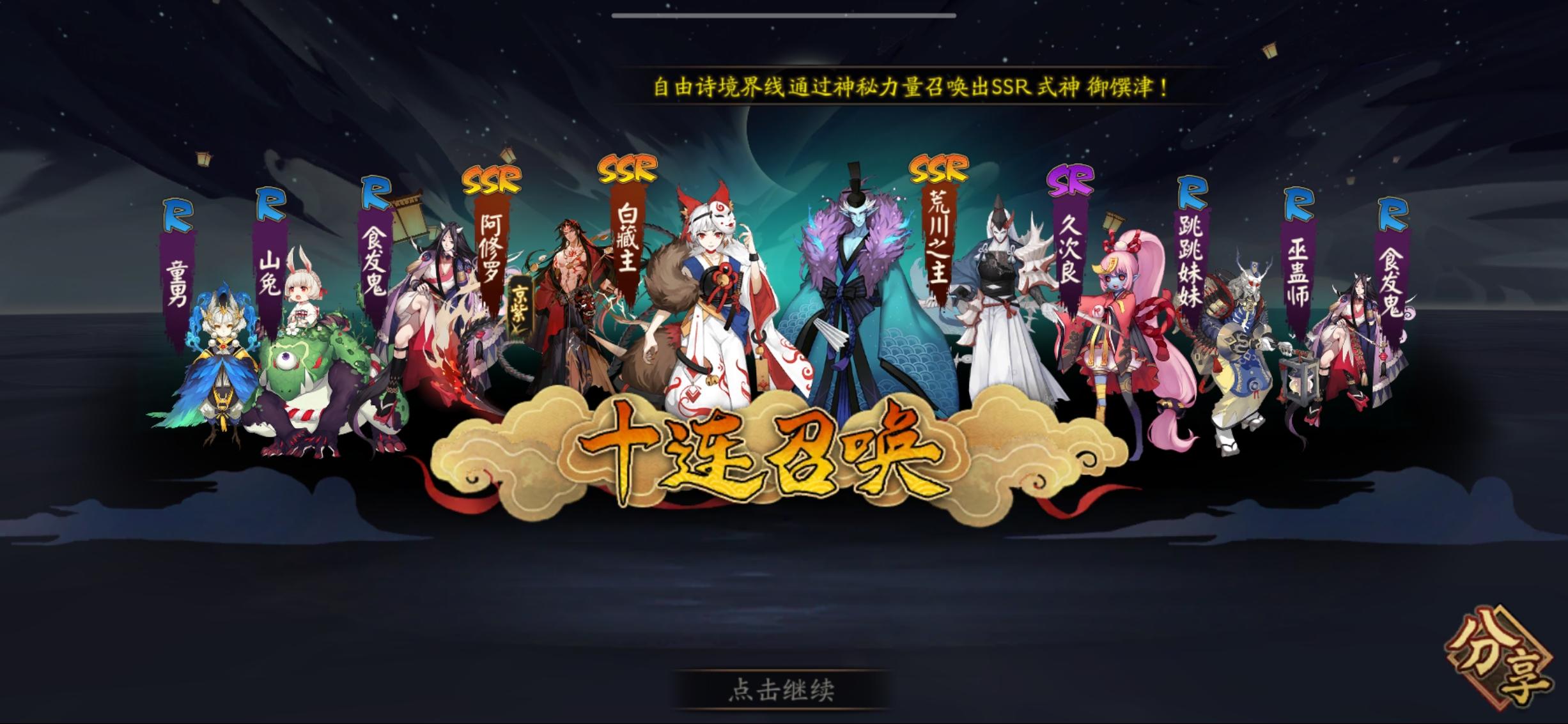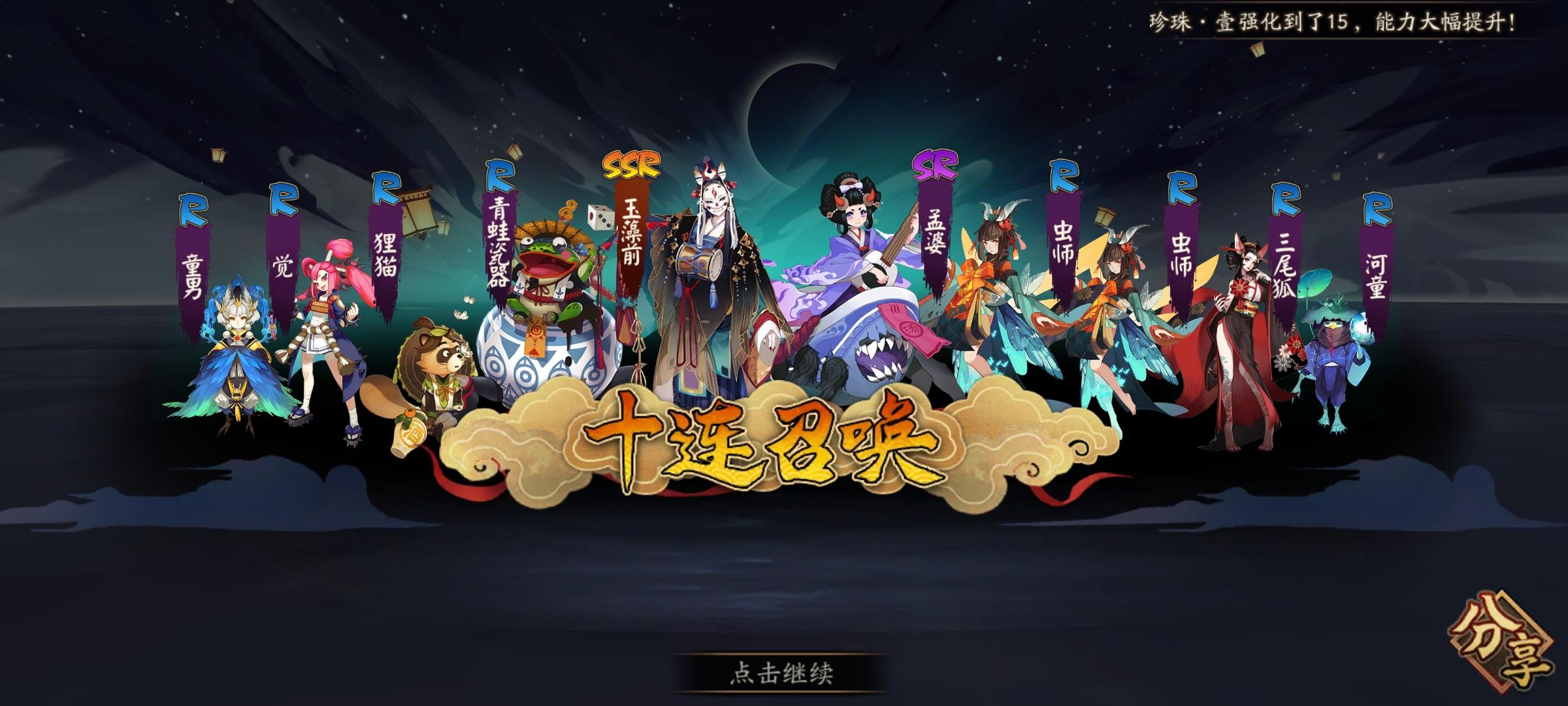 红叶活动本来200抽我就抽到了,因为up用完了2个sp(100抽之间一个SSR),我抽到了450抽为了冲大阴阳,中间就黑了一次出了个烬天(图二)那时已经340没有SSR了。因为没票了,所以等到红叶活动结束,我手里一有票就全抽了,可谓倾家荡产,结果呢,没up,370来了个酒吞,我真的气死了,二觉不来了,然后来断我非酋了,于是把仓库所有酒吞都返了。那段时间佛系了,想着无所谓啦,大阴阳哪有那么容易的。(