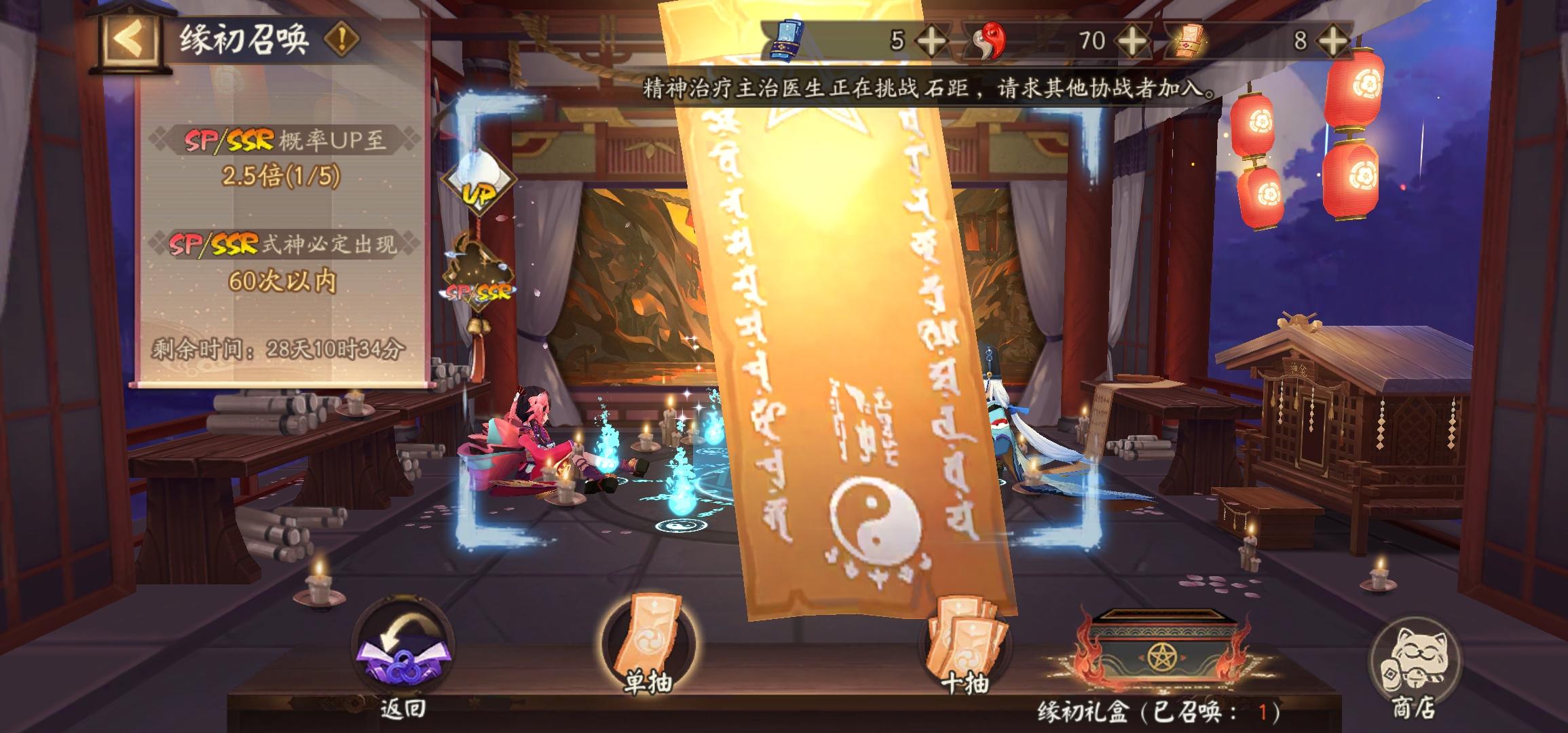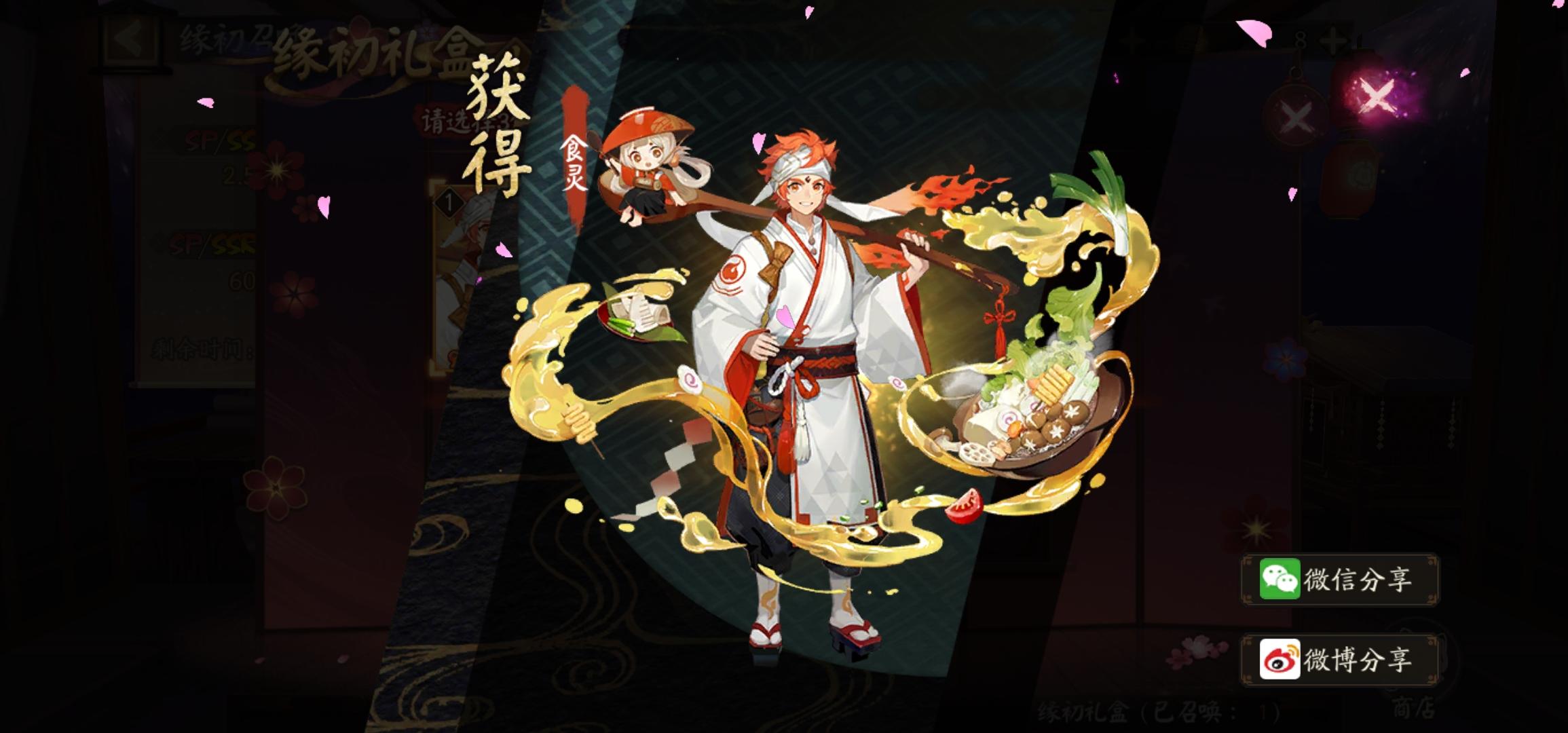 缘初召唤,免费的第一发直接出了食灵,哈哈哈哈