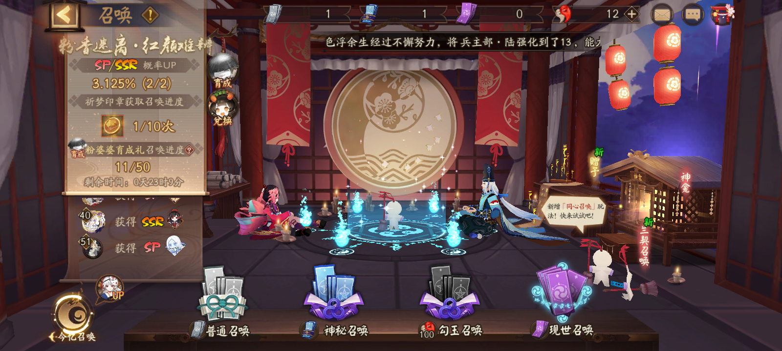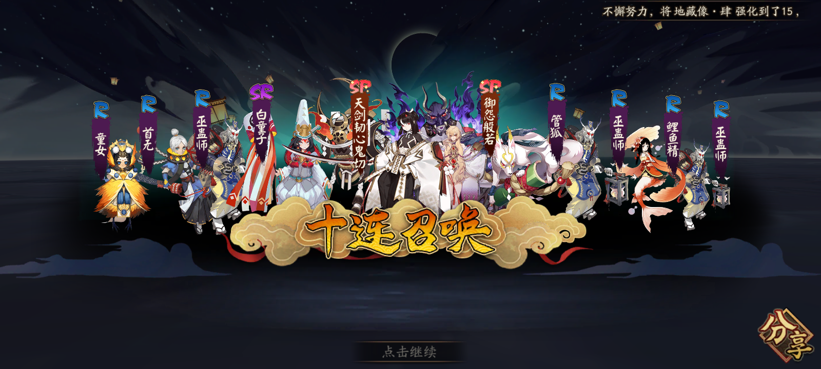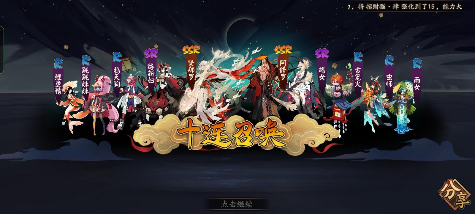 冲大阴阳师终于成了,日月同辉,上次424抽断了,这次中途黑了一次还好是鬼吞,芜湖!
