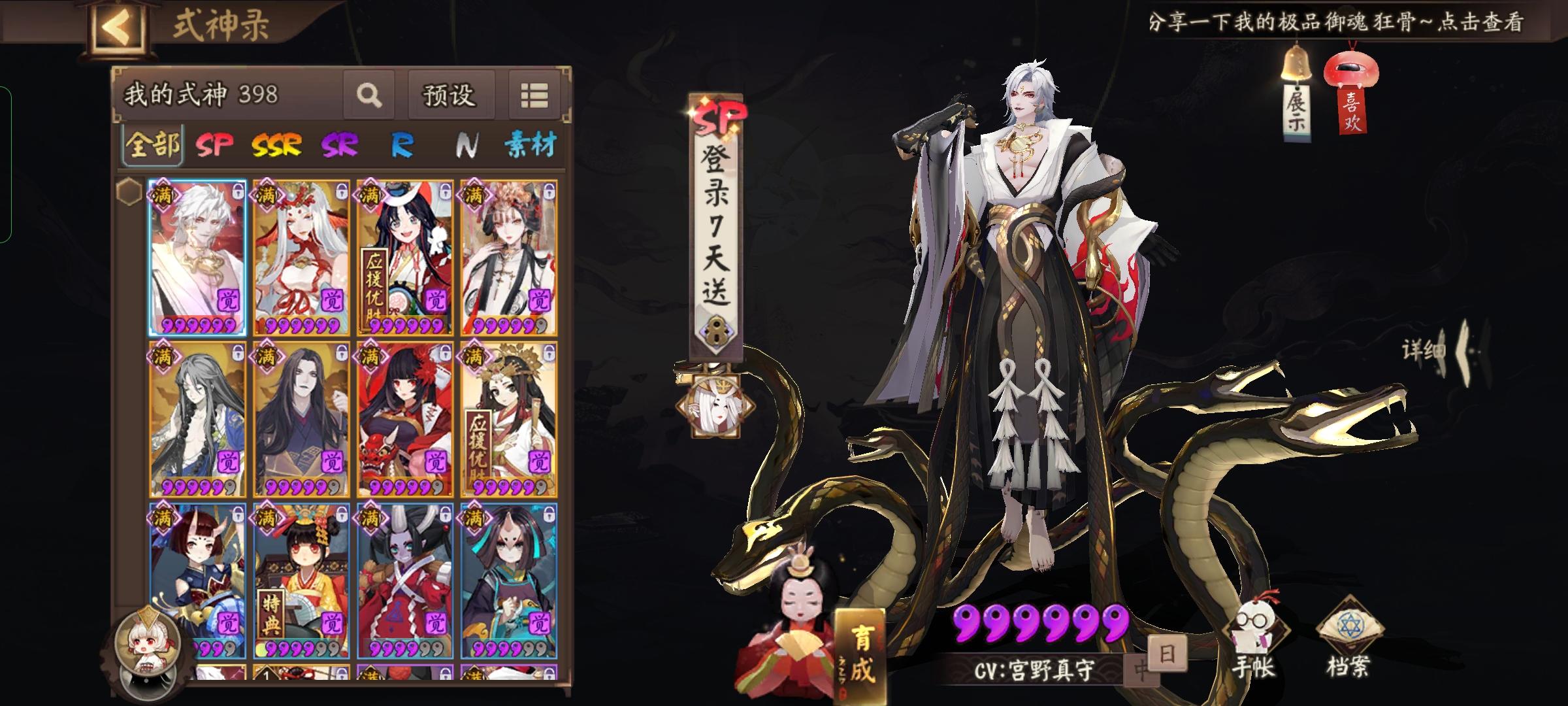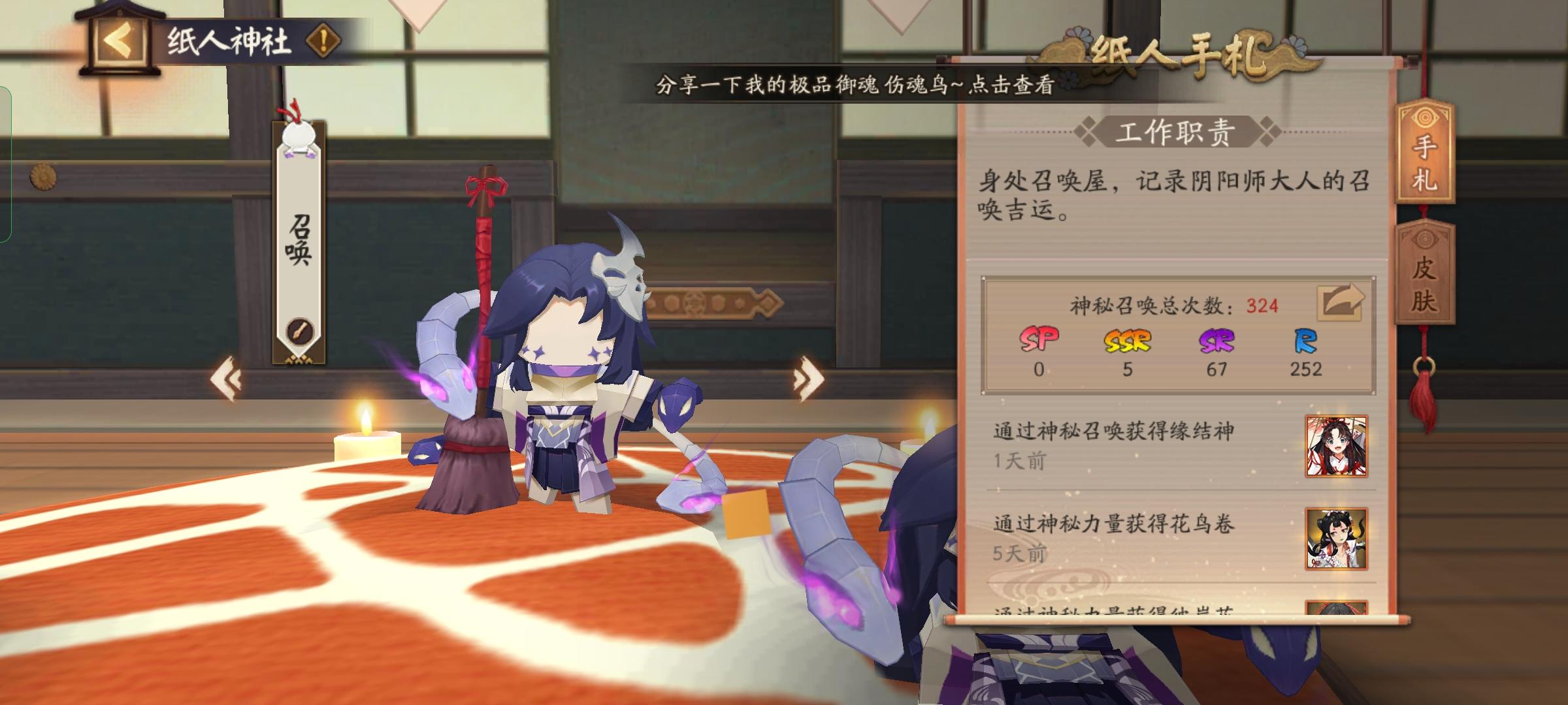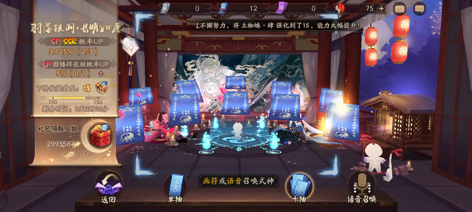 冲大阴阳师终于成了,日月同辉,上次424抽断了,这次中途黑了一次还好是鬼吞,芜湖!