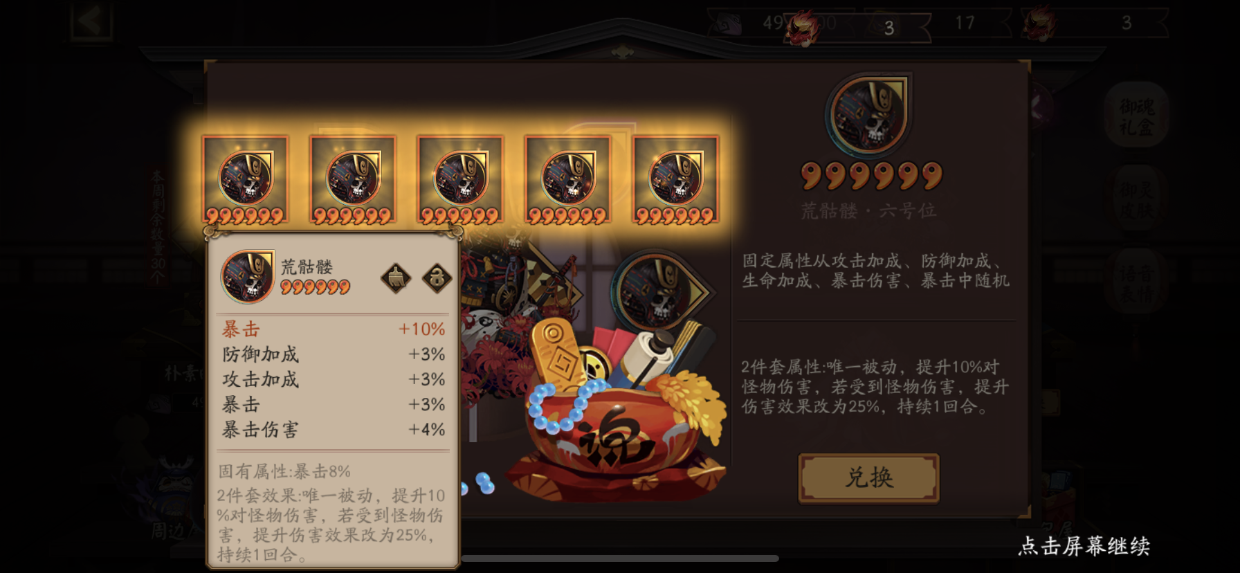 玩的第七天听说六号位的御魂很难出暴击暴伤,都说概率小,让我攒十个二十个去赌我说我去试试看,直接拿寿命试试