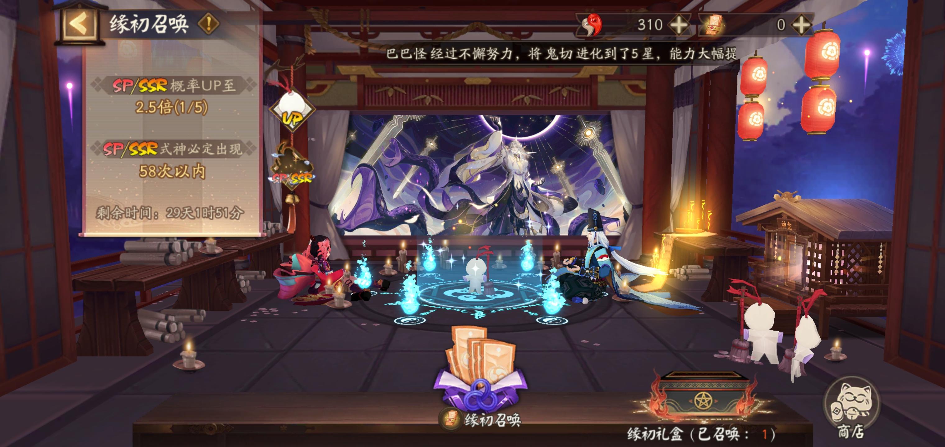 大蛇卡池还有个普通玉藻前没截图大蛇活动商店七天灯鹿还有个出师的没开,拜了个师傅说是期末没时间,任务没打,等他有空把任务打了,看看给啥吧