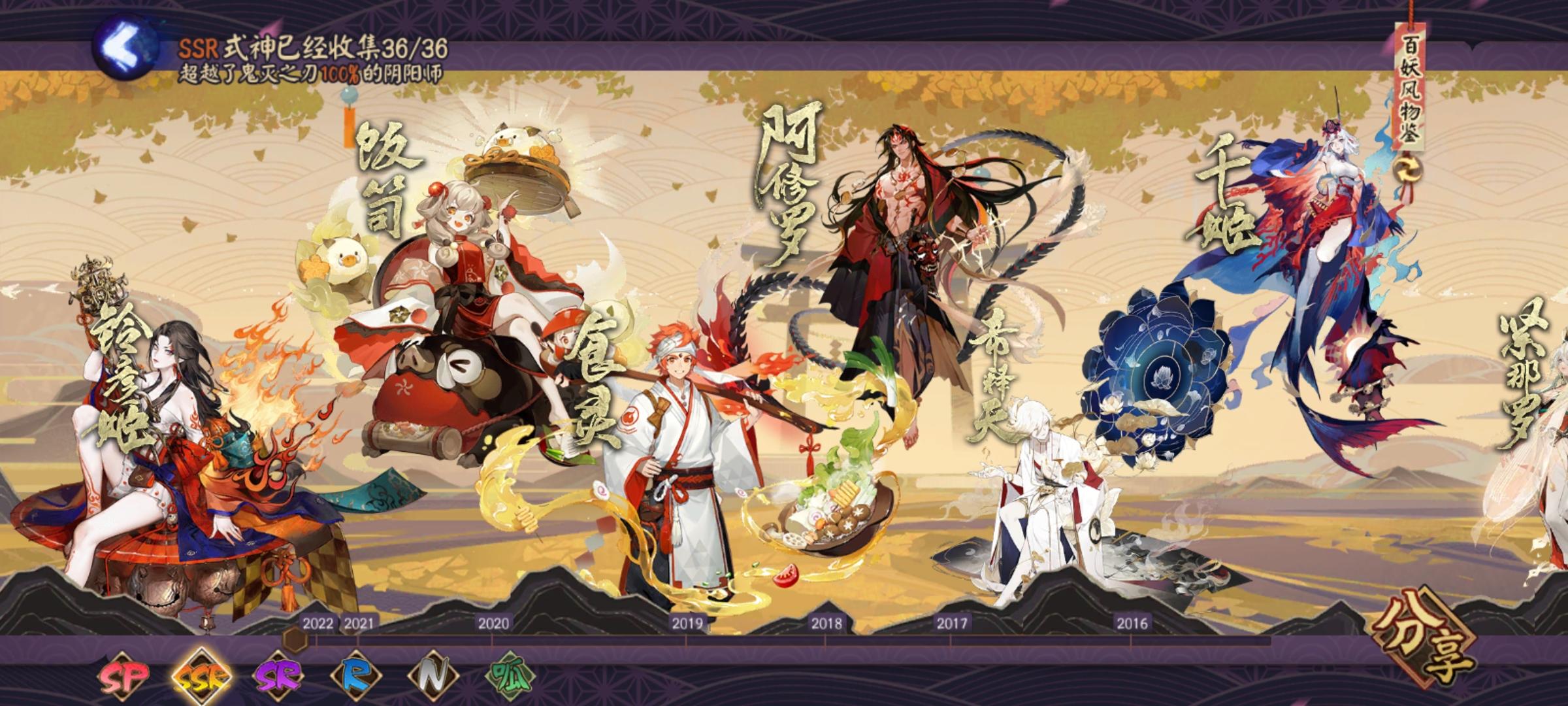 没有全图,SSR差太子和太子妃和017 SP差好几个忘了 祝各位免费一抽出新式神