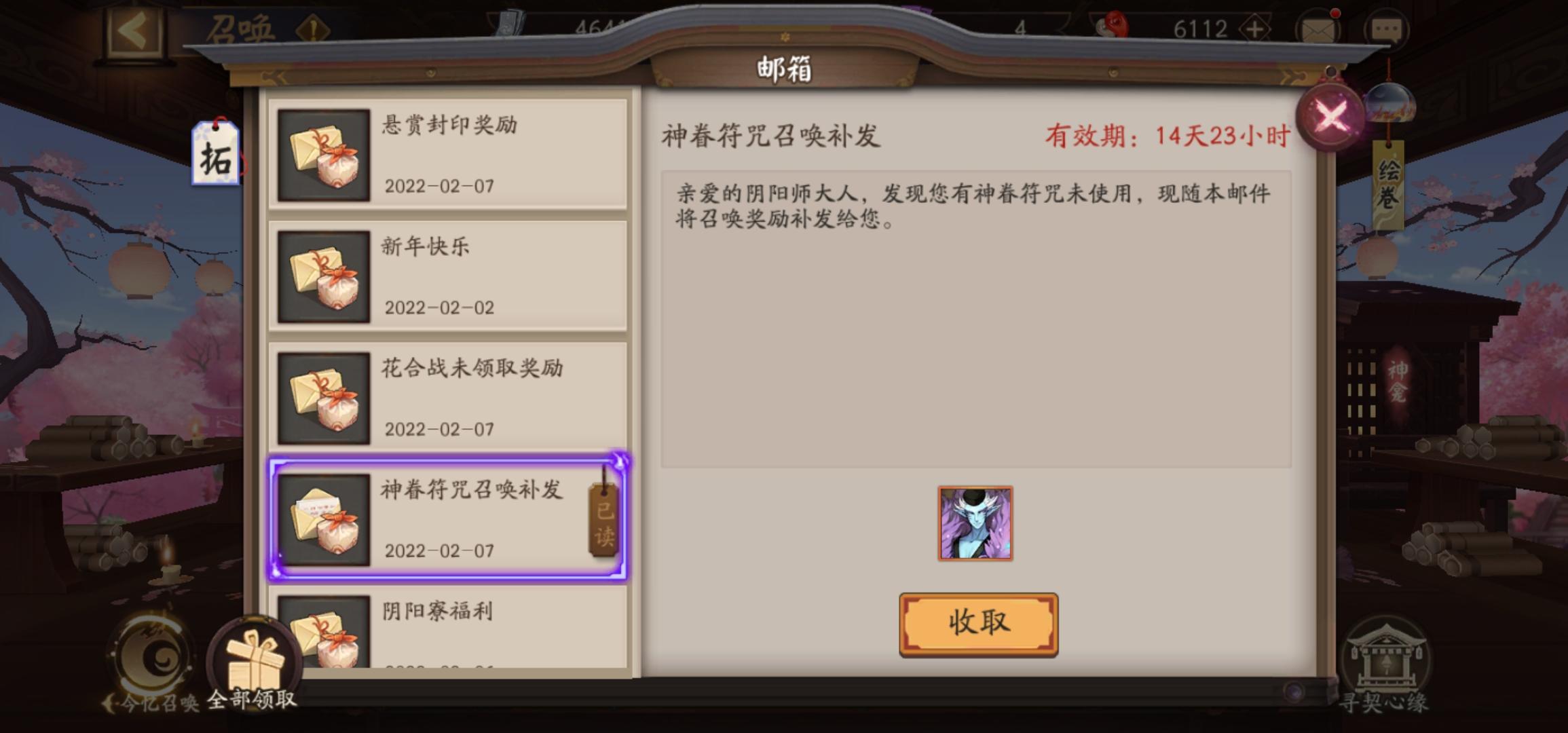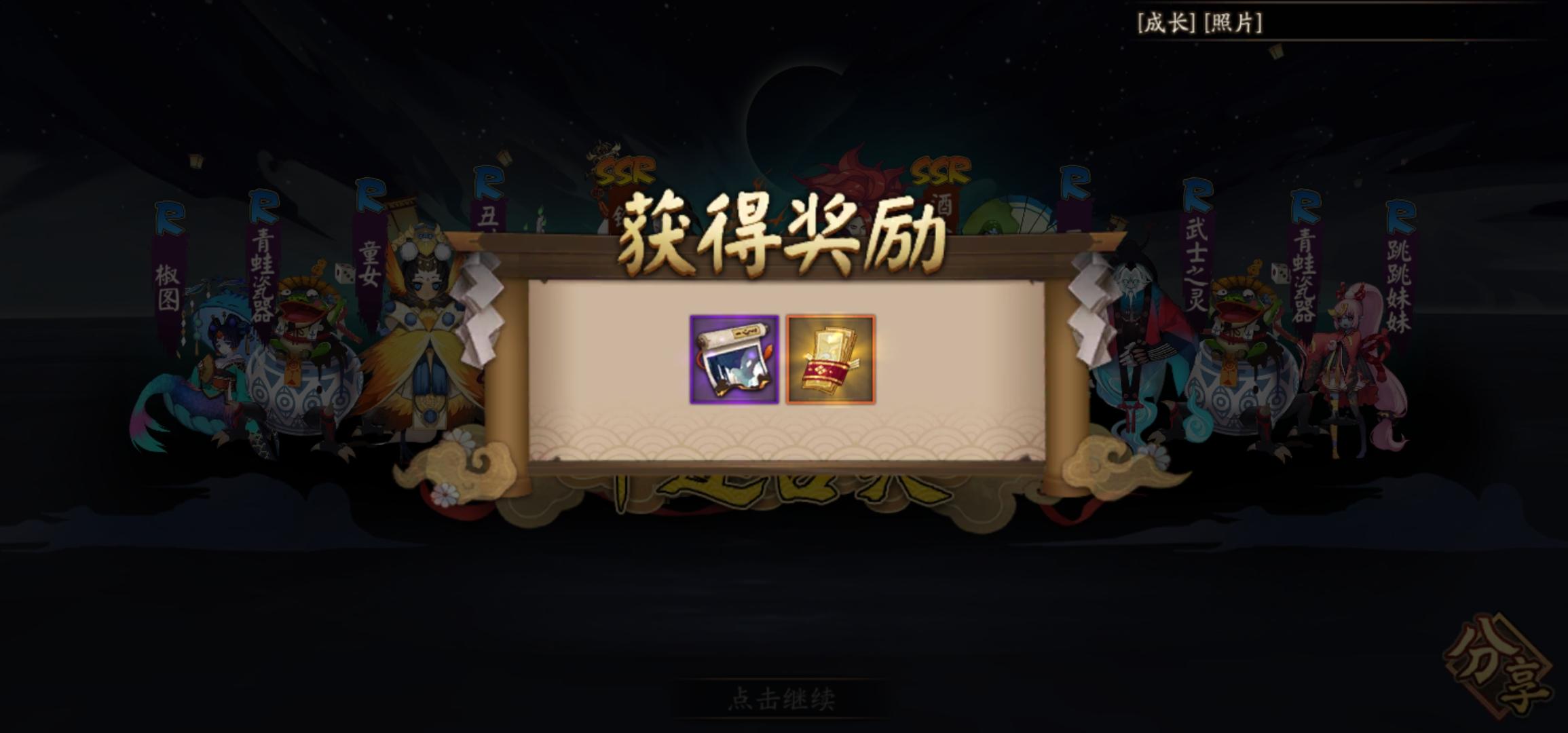 给大家来个承包你们笑点的事情,之前铃彦姬up,一次十连抽新式神和票子就出来了,然后因为全图了就没用,加上过年比较忙就一直没上游戏,然后最后符咒成了个这个😂