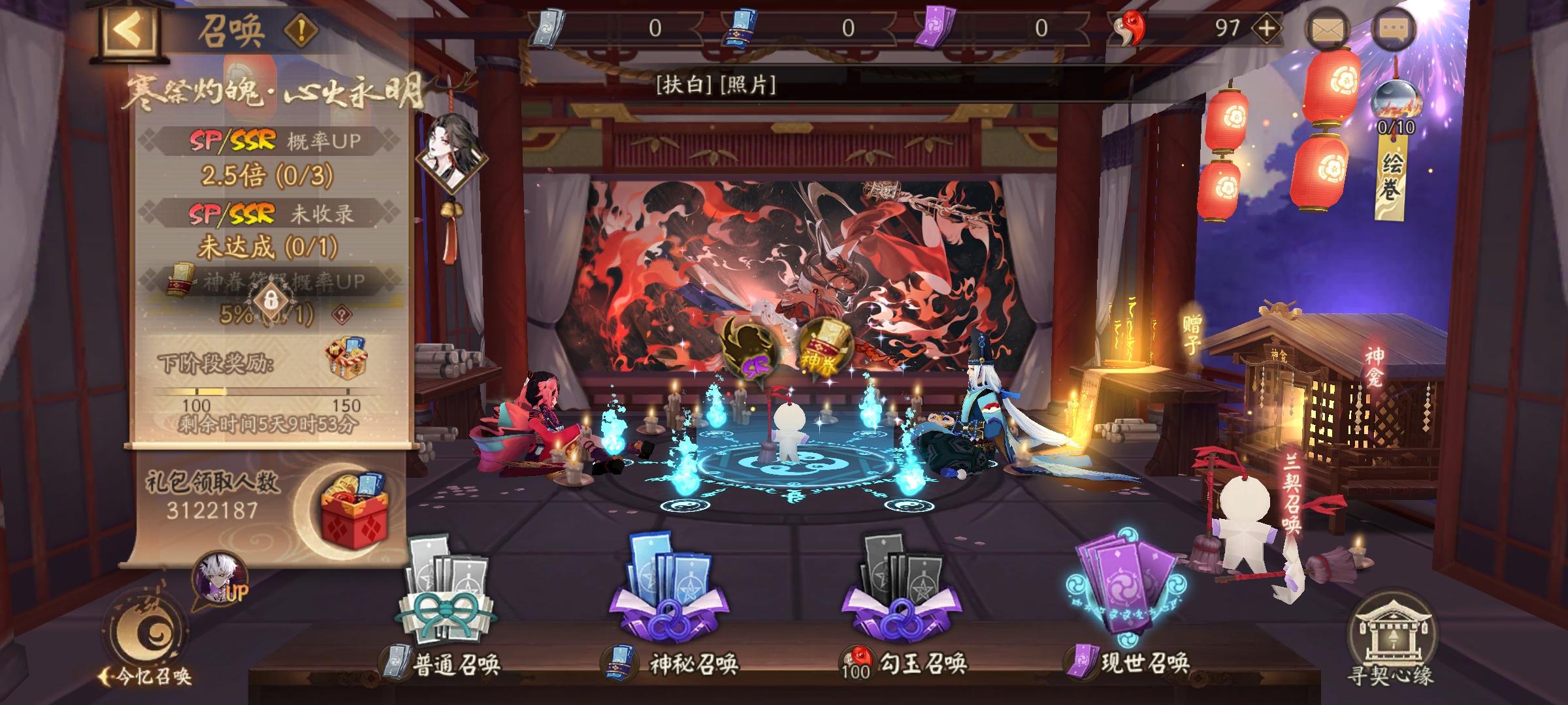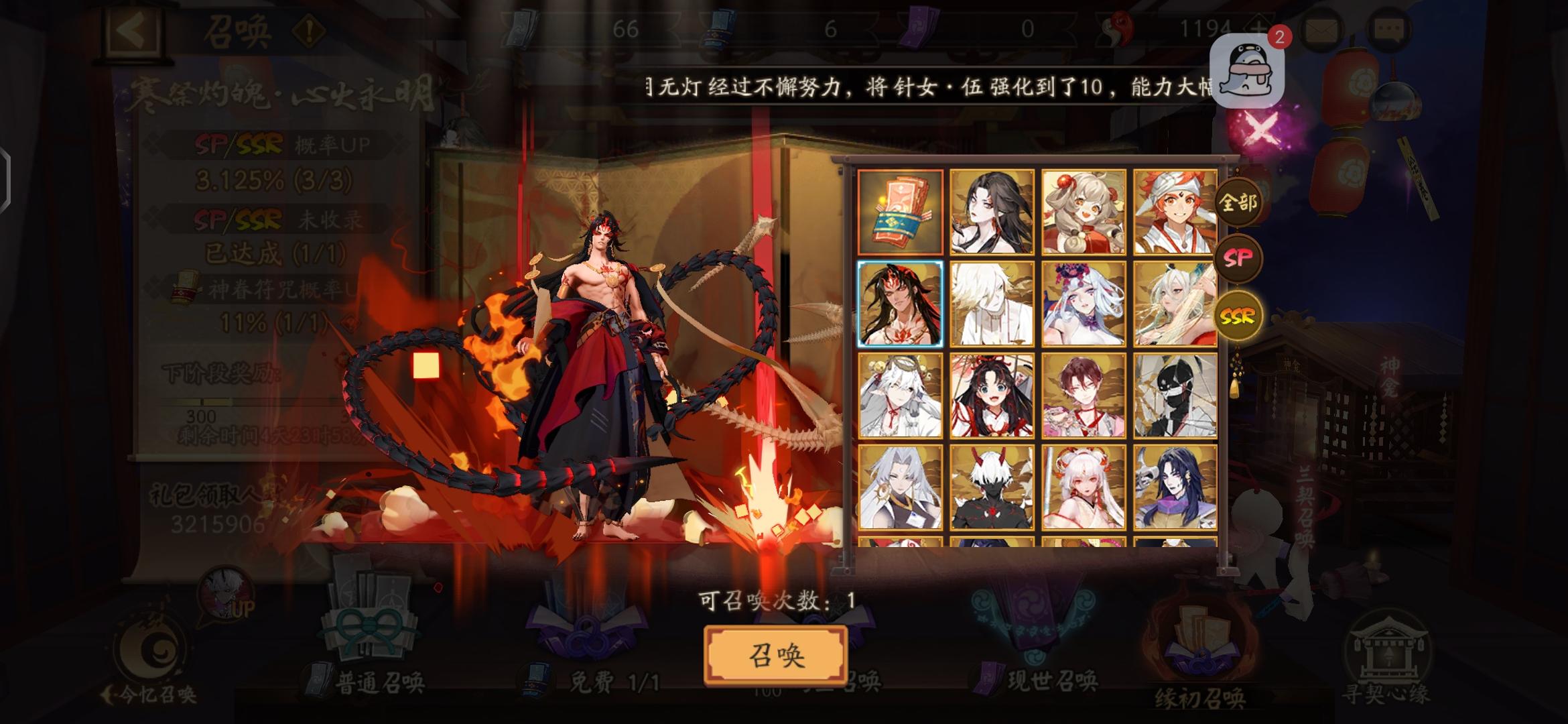 抽卡60抽一个麓丸,一个铃彦姬,一张神眷换了食灵。从现在开始,我可以做一个月的鼠卫兵