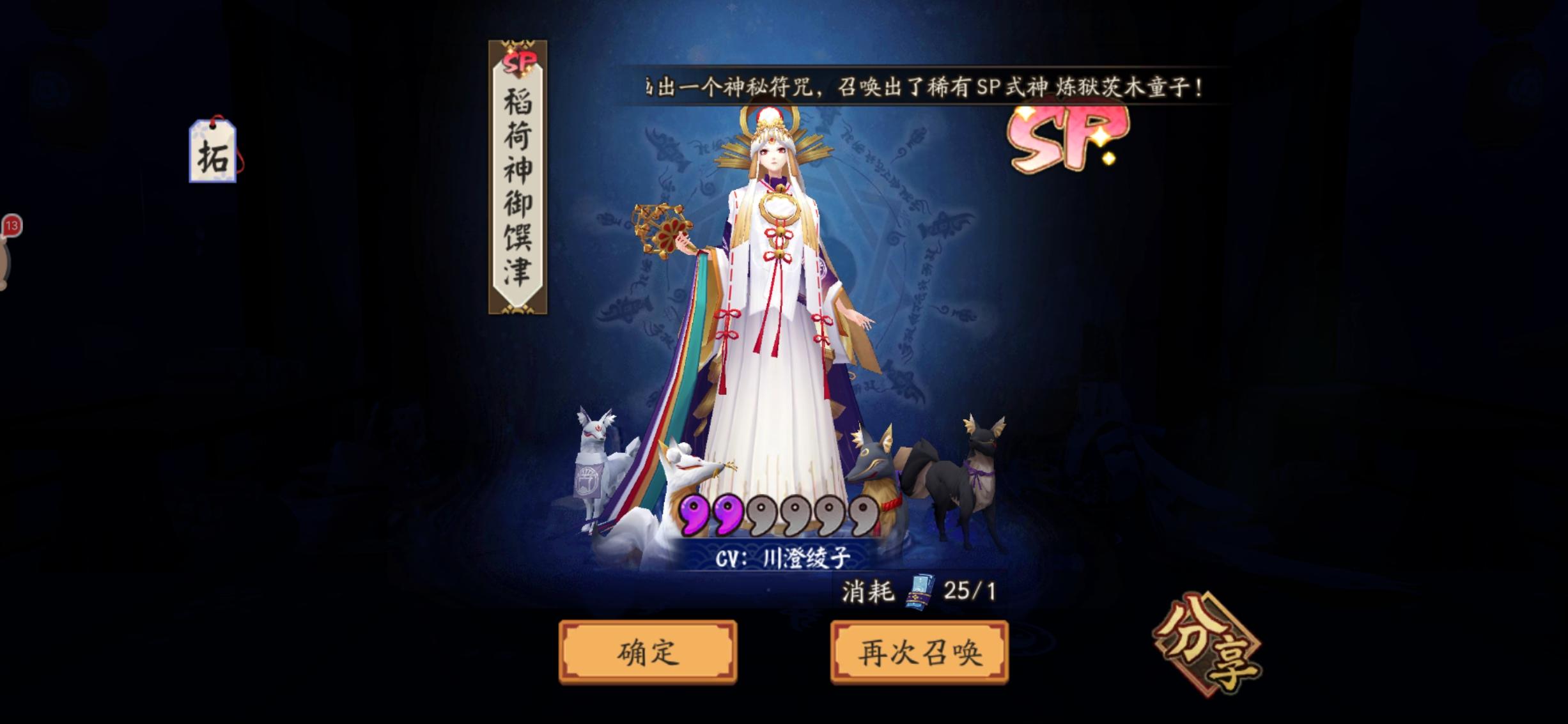 好耶好耶好耶好耶好耶!当我看到它提示我要下载召唤动画的时候,我就猜到了事情并不简单,之前单抽出了sp御馔津,我就在想肯定不会再出了,免费单抽用掉意思意思,没想到又出了!好耶!!