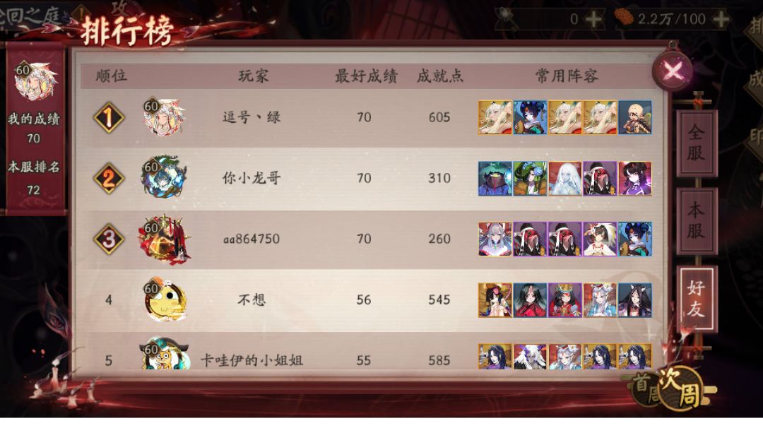 次周活动,通关只输了一次,被打火机+络新妇控到死。 有木魅小僧,只要对面没有打火机,控制也不可怕。 3紧5水横着走