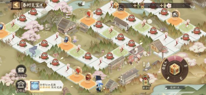 >>>参与方式分享你的「春时觅宝」活动截图>>>活动时间3月13日-3月20日>>>活动奖励100元严选卡*3>>>活动内容春光烂漫,寻迹觅宝正逢其时。无事发生、觅得宝物、额外前进……大人可通过投掷「寻迹骰」,在「春时觅宝」活动中获得不同际遇。还有沿途和终点获得的「赏春樱」,可于商店兑换全新阴阳术主题·森罗谧境、结界皮肤·祈舞神殿。在谧林中观赏春景,在神殿中与春共舞,真上“骰”啊!大