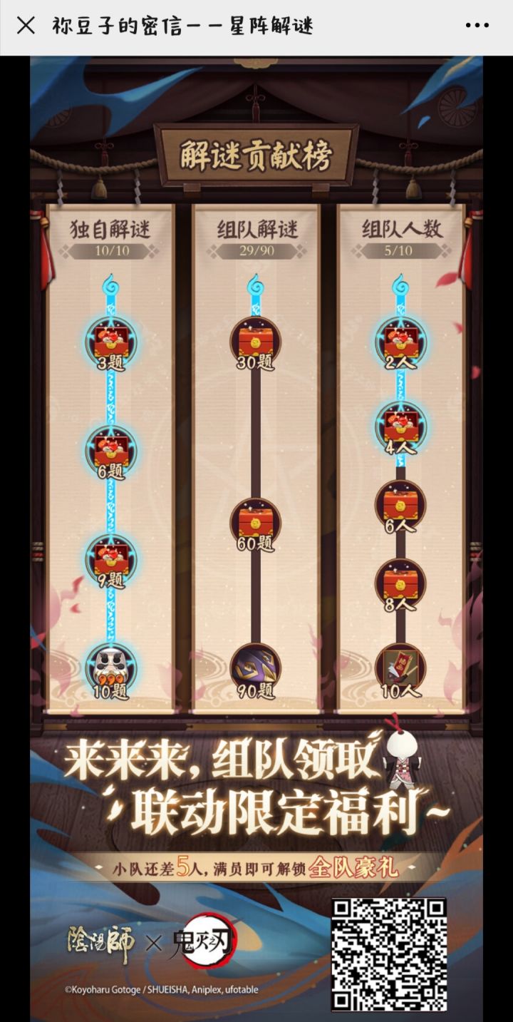 《阴阳师》×TV动画《鬼灭之刃》联动版本预约活动开启,全服累计预约人数达成1000万,即可免费领取全新联动绝版限定SSR灶门炭治郎!为大人们送上预约活动入口 (ノ゚▽゚)ノ→即日起至2月7日更新维护前,阴阳师大人们只要前往活动页面完成预约,即可获得1份惊喜奖励;分享邀请好友助力,还有御行达摩碎片可以获取;达成指定预约人数,将可解锁SSR灶门炭治郎等对应的全服奖励~ 具体活动规则,大人们请戳长