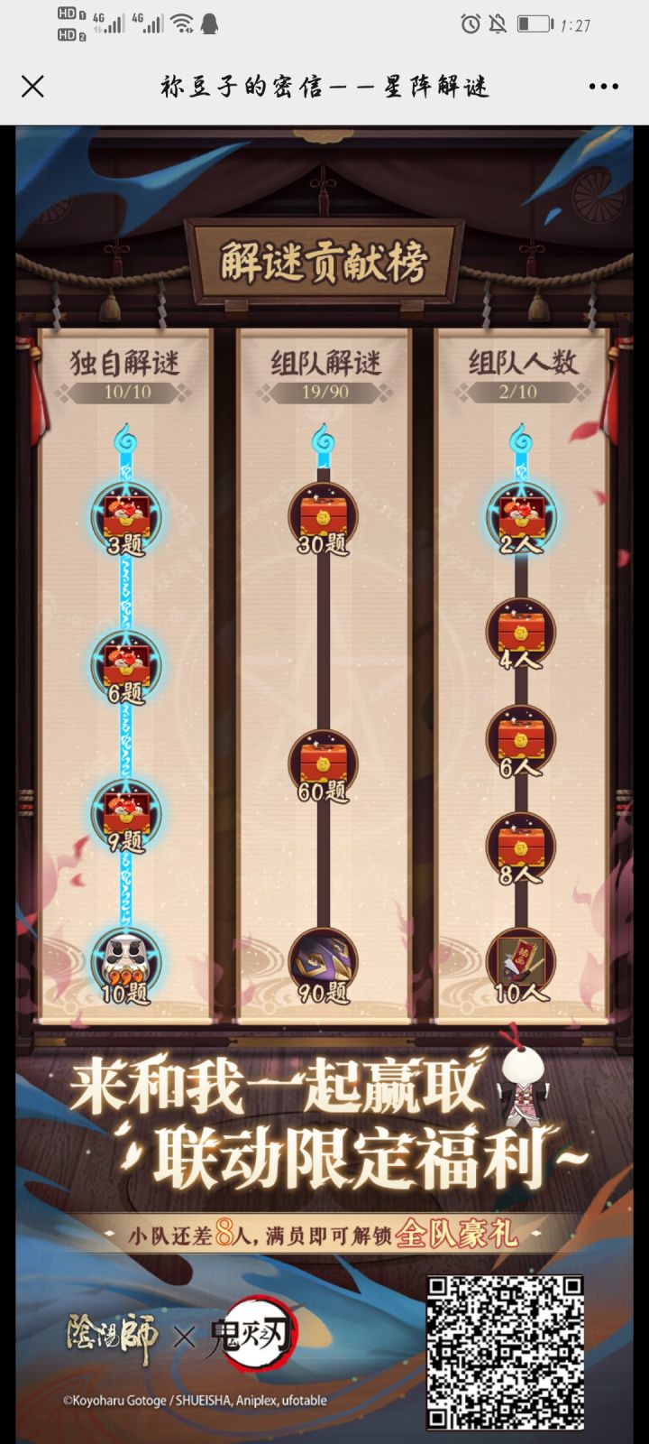 新活动祢豆子的密信,一起组队领黑蛋碎片吧~