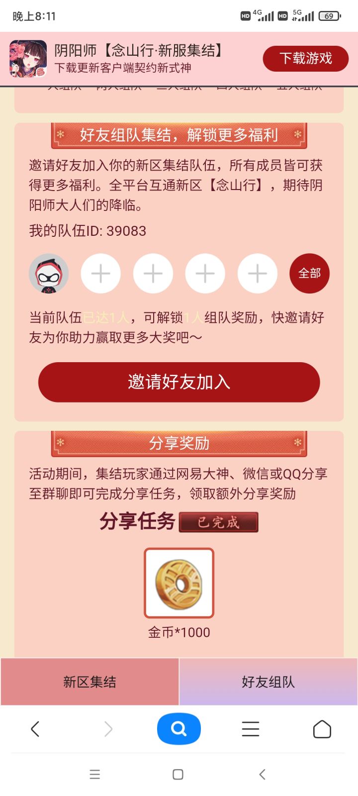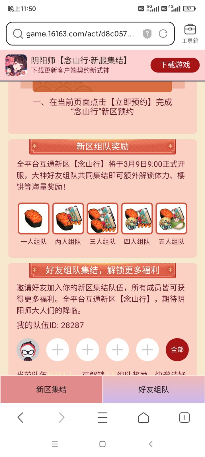 新区组队预约的奖励。https://game.16163.com/act/d8c05724555fc602/invite/620e064306ab3300015ae27d?utm_share=1&userVoteId=62238d8ed56e68a1fa43c60e6R5Z1MaC