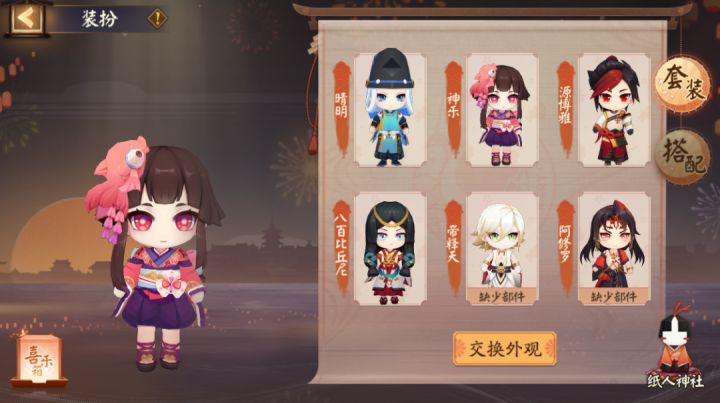 >>>参与方式<<<分享你最喜欢的Q版皮肤>>>活动时间<<<7月8日-7月16日>>>活动奖励<<< 祈舞唤神双人立牌*3>>>活动内容<<<盏盏灯火亮起,隐藏在町中之后的神秘广场亦开辟出全新面貌,式神们身穿Q版新衣,齐聚妖怪之里。在这里,大人们能够依照自己的喜好装扮Q版式神,参加阴阳寮宴会,庆祝式神生日与节日,甚至组成同心队,轻松探索平安京世界~大人们可在「装扮」页面设计