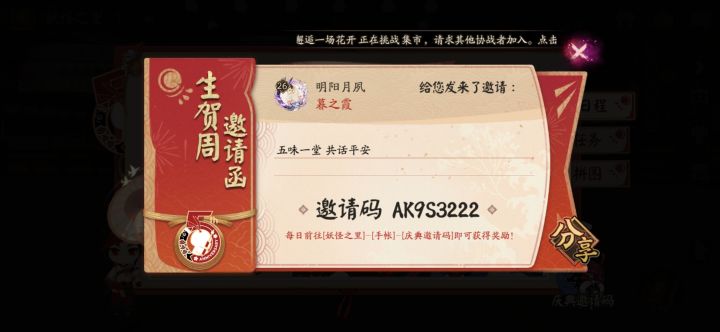 阴阳师五周年邀请码AK9S3222宝子们,一起来分享邀请码吧!😆