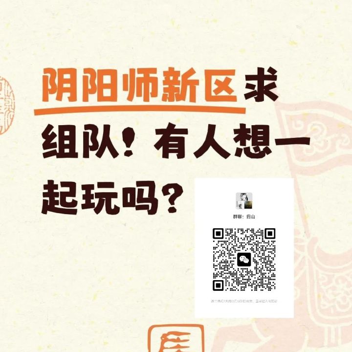 阴阳寮:归山新区预约寮预招✨ 从零拉一小v裙,基数少不会有小团体行为,预热环节,还有一段时间下月开新区。欢迎广大玩家老登转生,新人入坑加入我们。 还是希望在对于这款偏社交的游戏里多多结识一些网友,用来狠狠的朋友圈互赞(bu 本意是想通过游戏认识大家,最后游戏不玩了也要留下来作为我们日常聊天的单群存在,所以我们会对素质和话题参与活跃等稍微的卡一下 一个性质的那种。所以希望能把大家聚集起来.