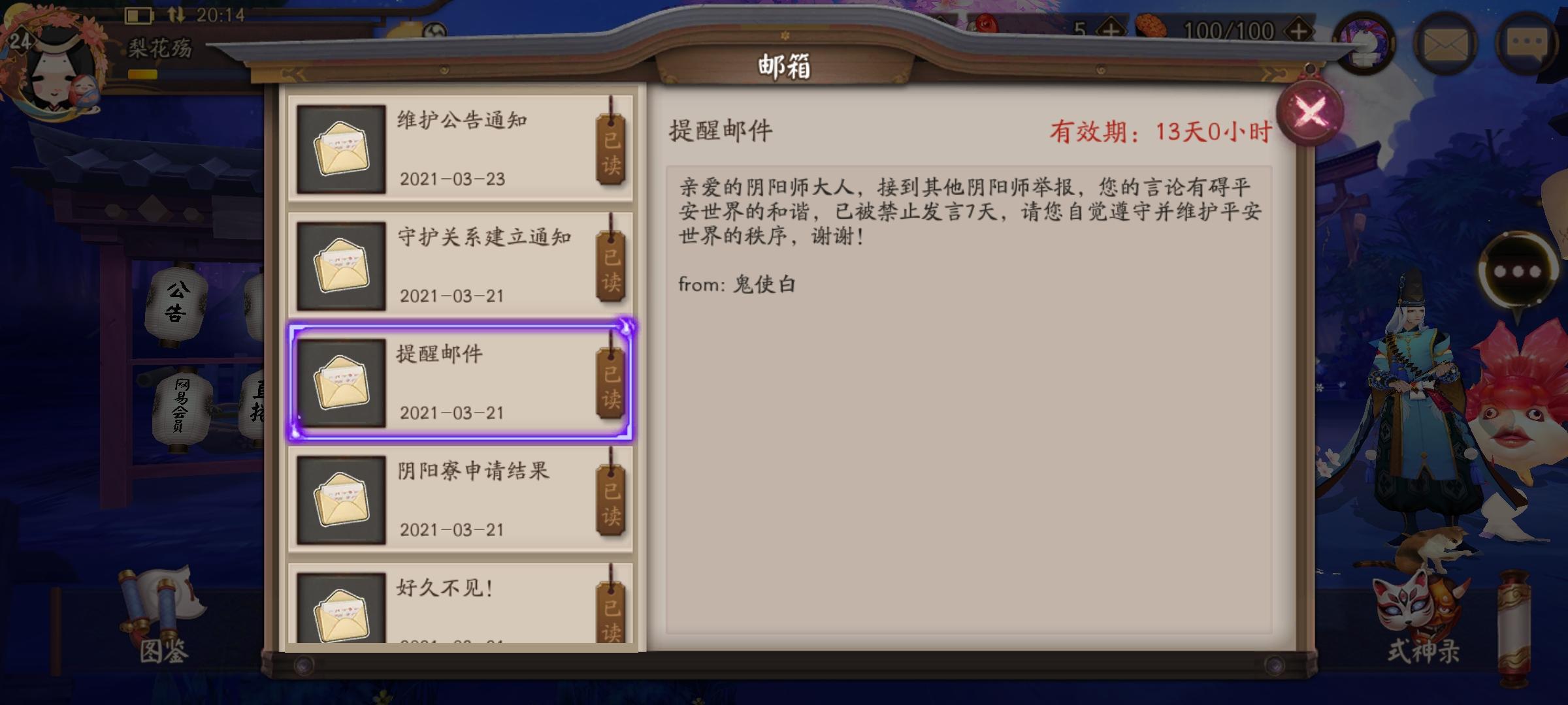 莫名其妙禁我言也就算了,禁七天以后我上线发了一句辣鸡就又给我频繁了,阴阳师你真是个好游戏啊