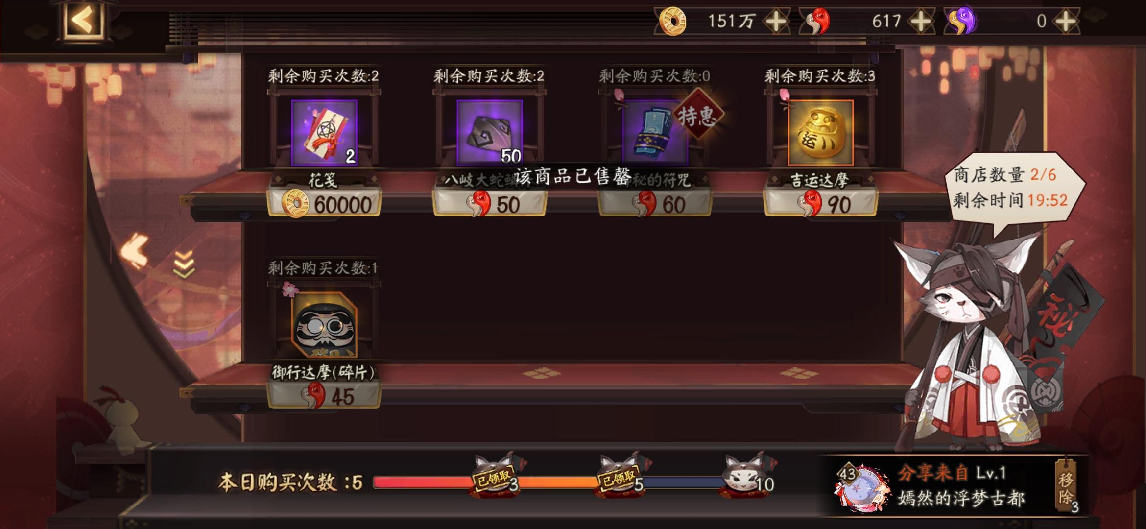 蓝票也没了式神也没增加