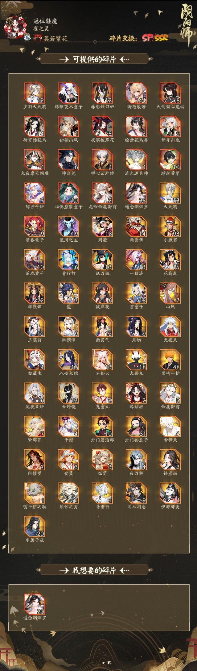有换sp烟烟罗碎片的吗?