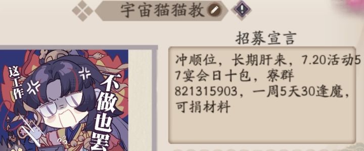 这里是宇宙猫猫教团!新区马上开所以我们打算冲顺位寮,所以欢迎比较肝的米纳来!