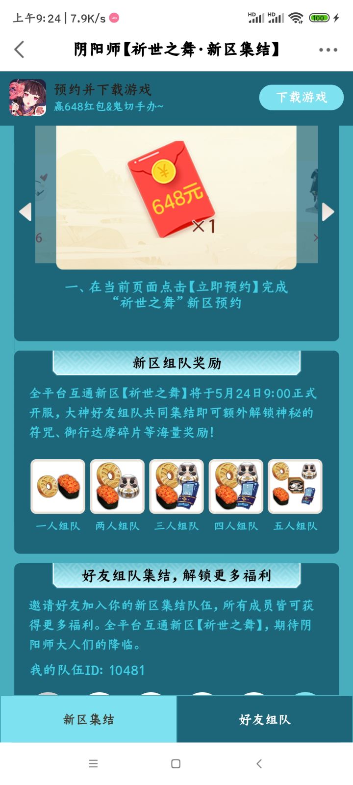 新区另一个组队活动,五人队,速来多白赚一份蓝票【输入我的邀请码10901,有机会免费领648元游戏红包】《阴阳师》新区“祈世之舞”火热集结中,快上车!复制文字到大神,即可打开活动页面 ¥https://game.16163.com/act/d8c05724555fc602/invite/645c89f7de624c000131d930?utm_share=1&userVoteId=646b117bb25f71b99a569a66GCmhGta2¥