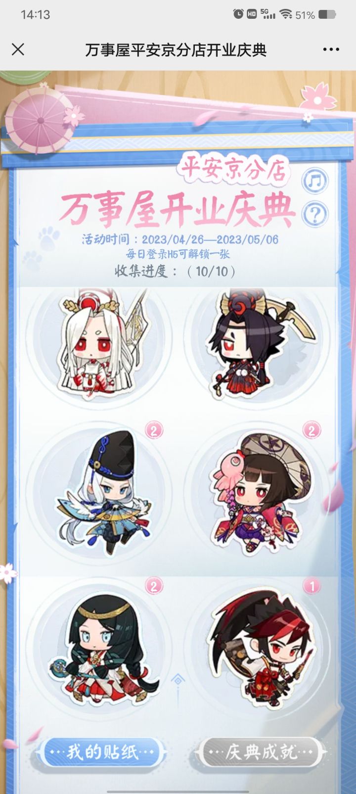 阴阳师联动换贴纸的来