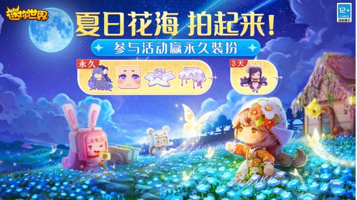 冒险家们,迷你世界新版本将在6月26日隆重登场!你准备好迎接新的冒险了吗?在新版本中,将有全新的花海地形,为大家带来更丰富的冒险场景,还有全新的相机功能,让你和小伙伴轻松定格美好瞬间!为了预祝新版本的到来,本期活动,我们为大家准备了永久装扮和激活码奖励,快来参与本期活动,赢取属于你的丰富好礼吧!【奖励一】激活码:LHa64eef1163313fa217cd有效时间:6月19日至6月25【
