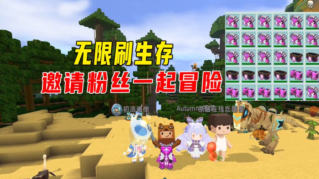 迷你世界:无限刷生存!邀请粉丝一起冒险,给每人刷了套乌金装备
