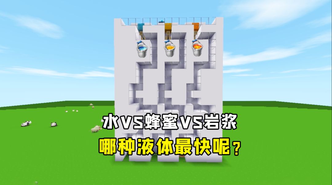迷你世界:水VS蜂蜜VS岩浆!同时落下,哪一种液体流的最快?