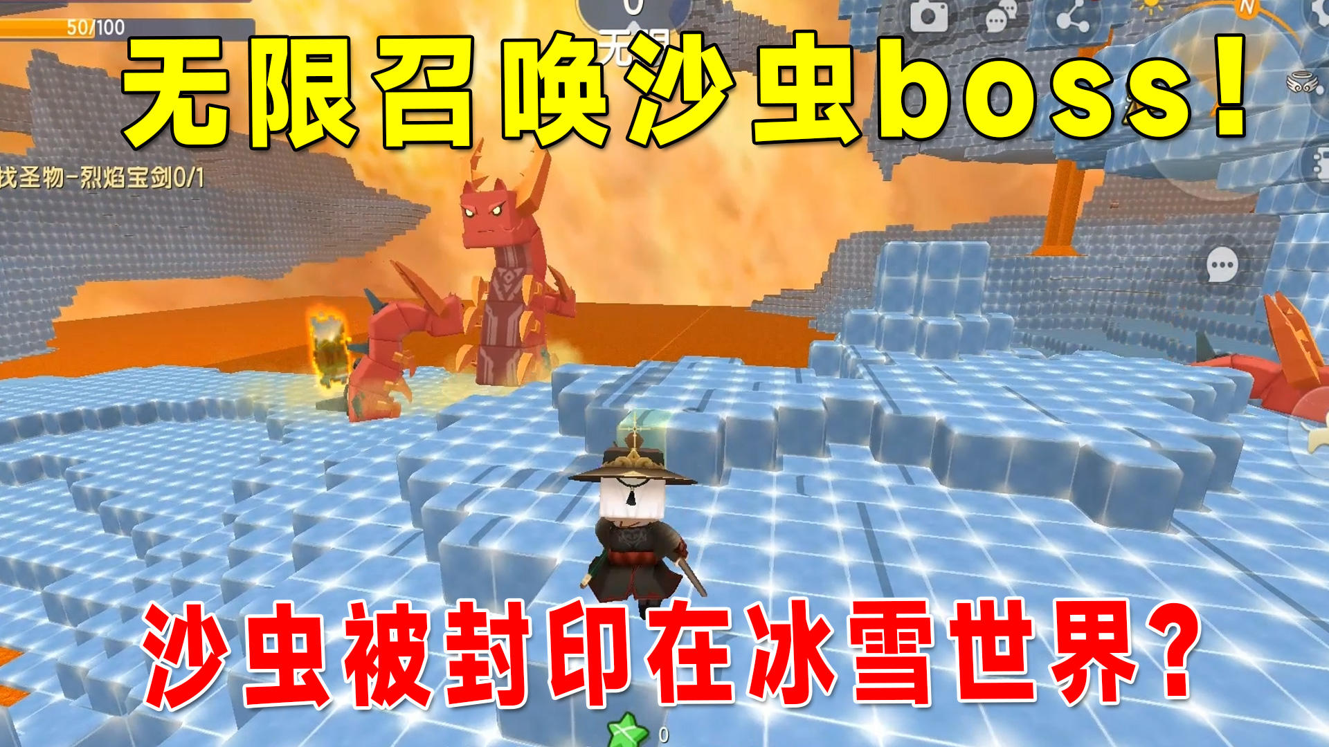 迷你世界:挖沙块可以无限召唤沙虫boss!沙虫被封印在冰雪世界