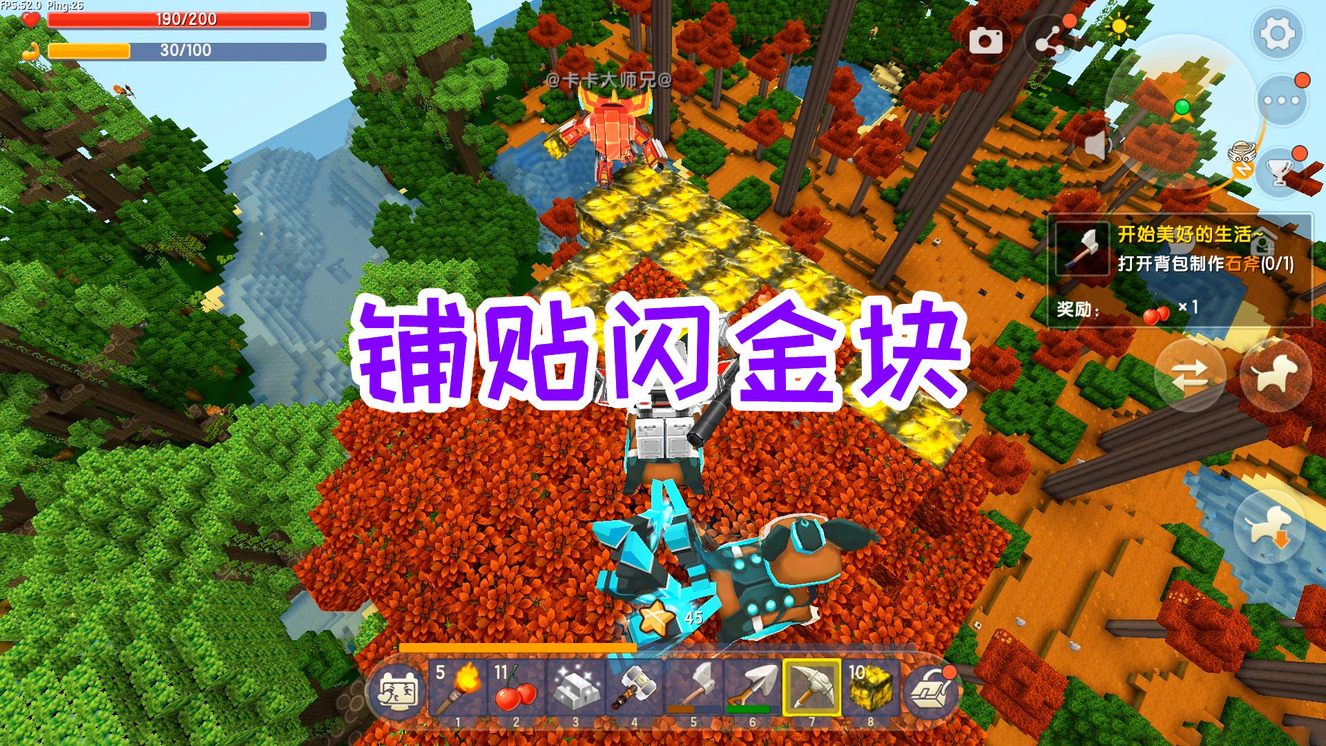 迷你世界万能岩石生存2:在红杉木树上铺贴闪金块,奢华的装修