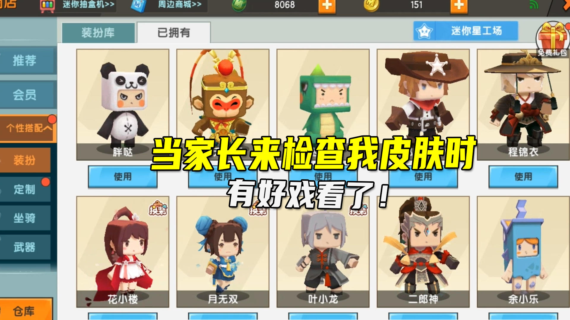 迷你世界:当爸爸妈妈来检查我迷你皮肤时,这下有好戏看