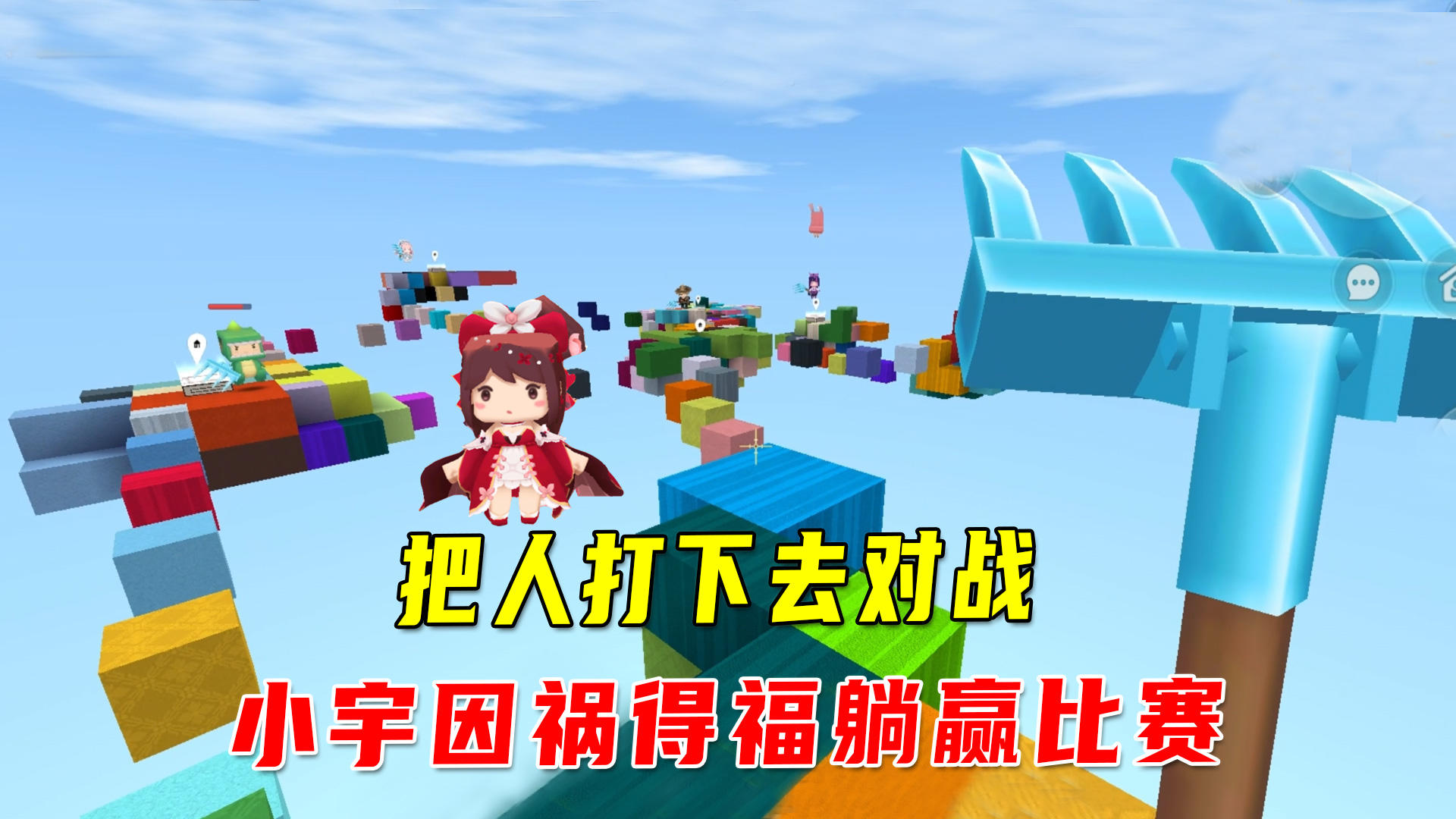 迷你世界:把人打下去,小宇因祸得福掉下去没有摔凉,躺着都能赢