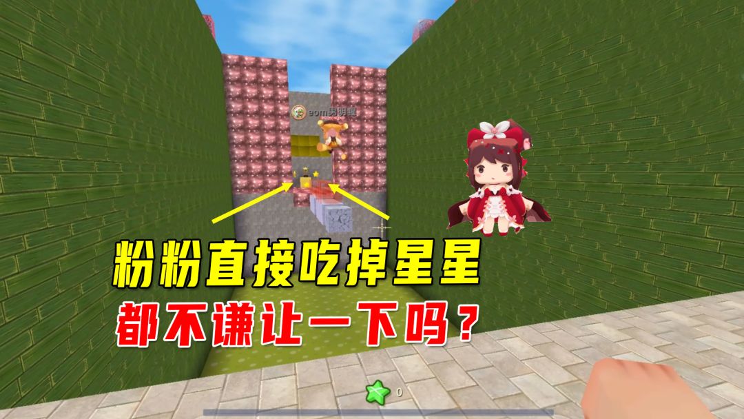 迷你世界:一滴血跑酷,我遇到好心粉粉?没想到吃星星一点不含糊