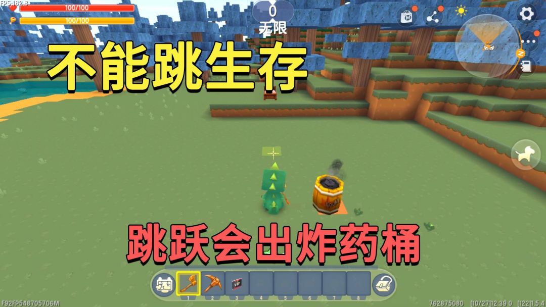 迷你世界:不能跳的生存,跳跃就会出现炸药桶,小迷根本寸步难行