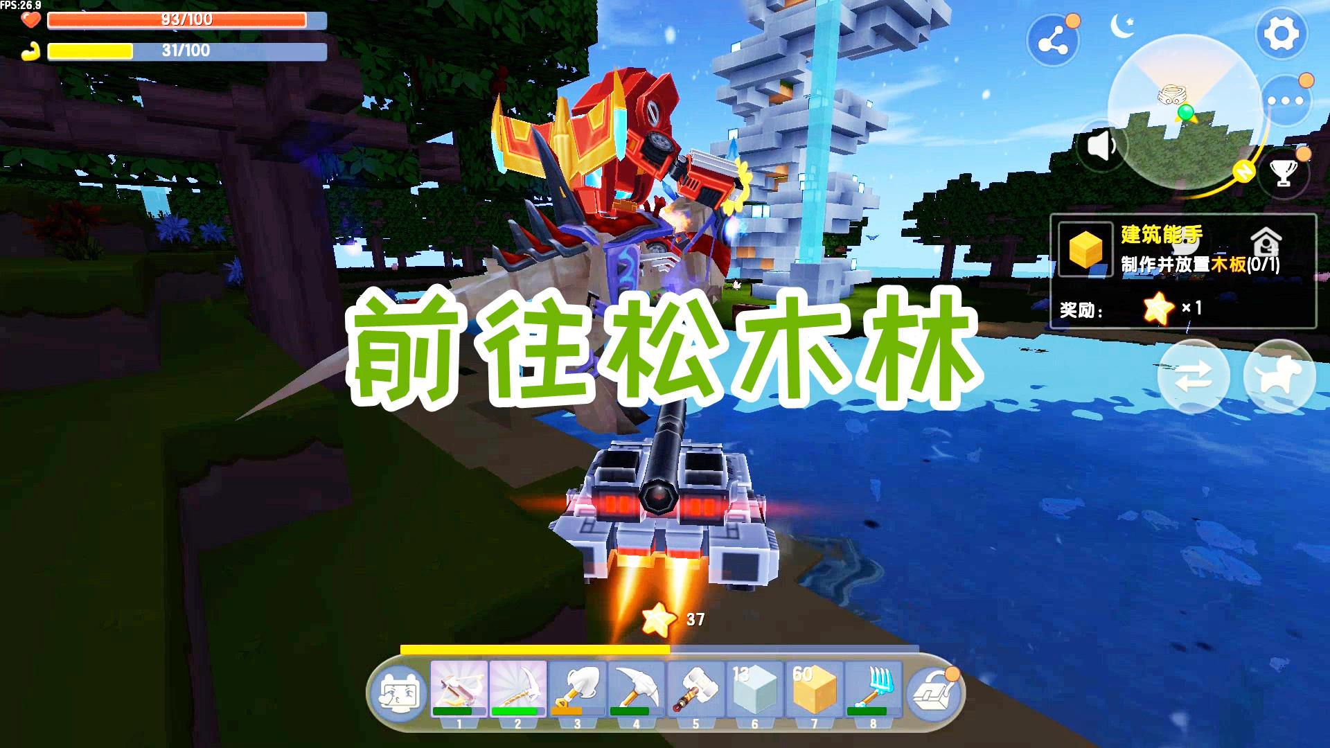 迷你世界双人生存44:骑着小飞鼠找麦穗,来到松木林收割皮革