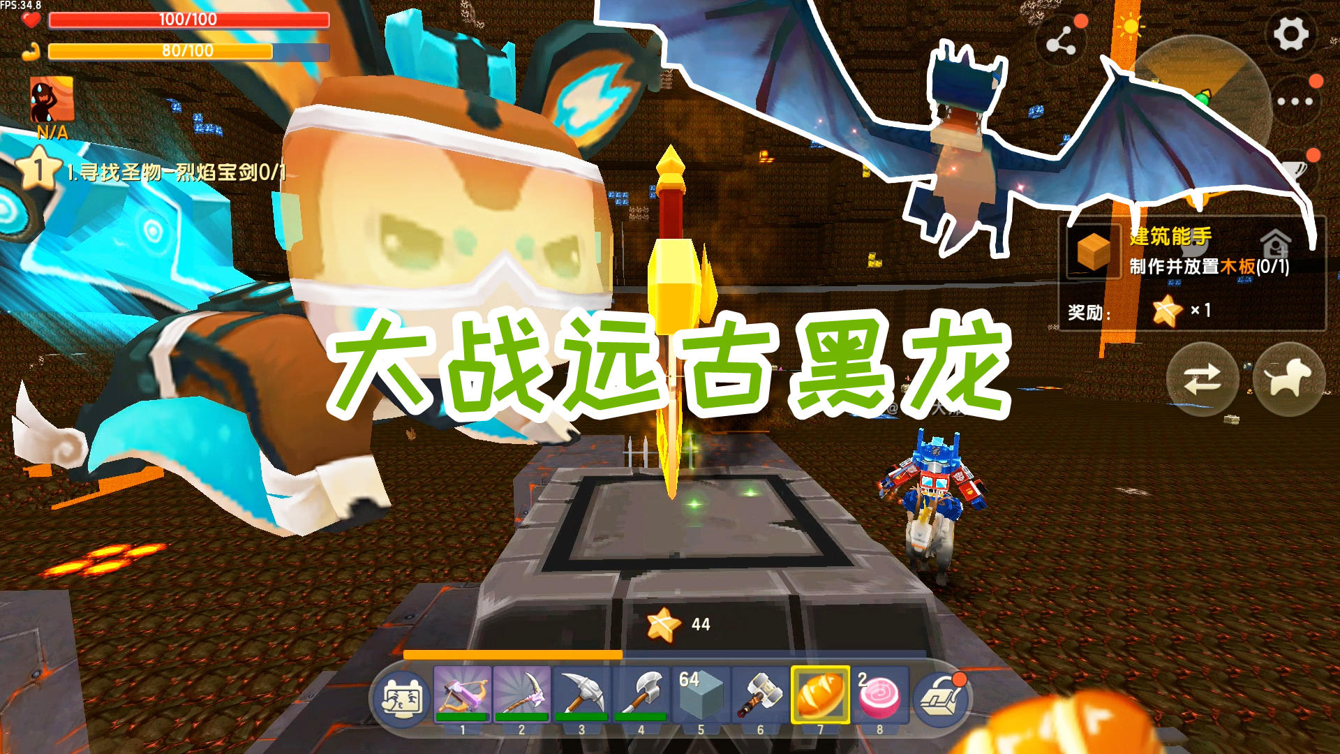 迷你世界双人生存31:骑着小飞鼠和火麒麟与黑龙大战三百回合