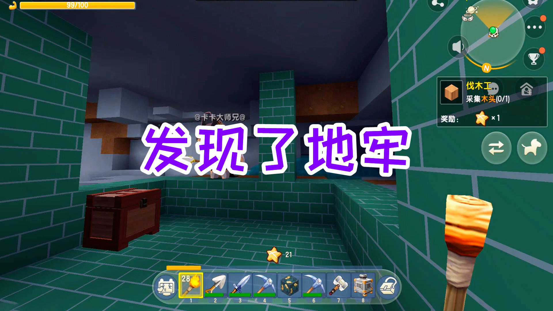 迷你世界双人生存4:继续挖矿,不小心掉进岩浆池,发现了地牢