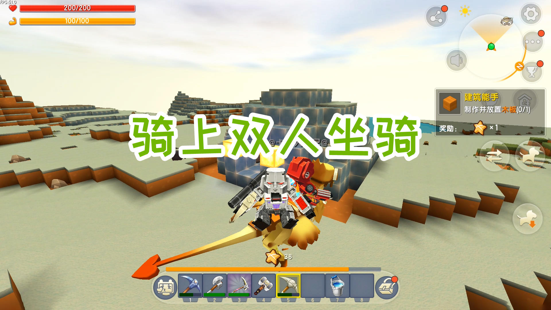 迷你世界双人生存27:为了挖符文矿石,骑上双人坐骑寻找新地形